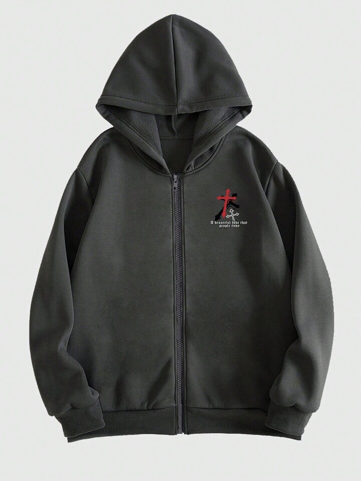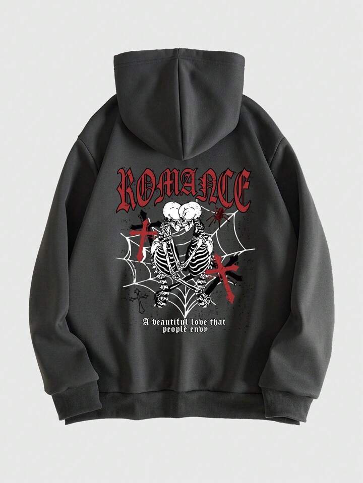 Goth Ragazzi Felpa con cappuccio scheletro & con grafica slogan con zip foderato termico