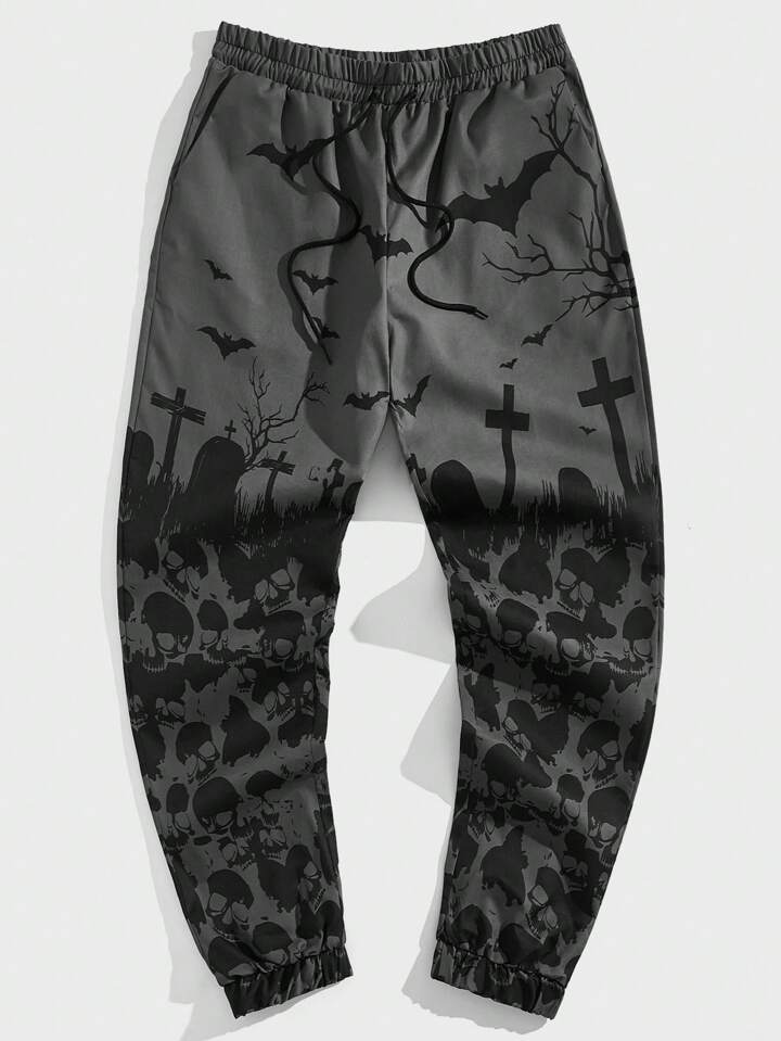 Goth Ragazzi Pantaloni con stampa teschi con coulisse a vita