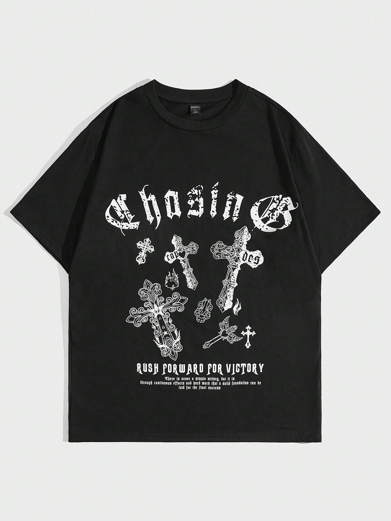 Goth Ragazzi Maglietta slogan & incrociato grafico
