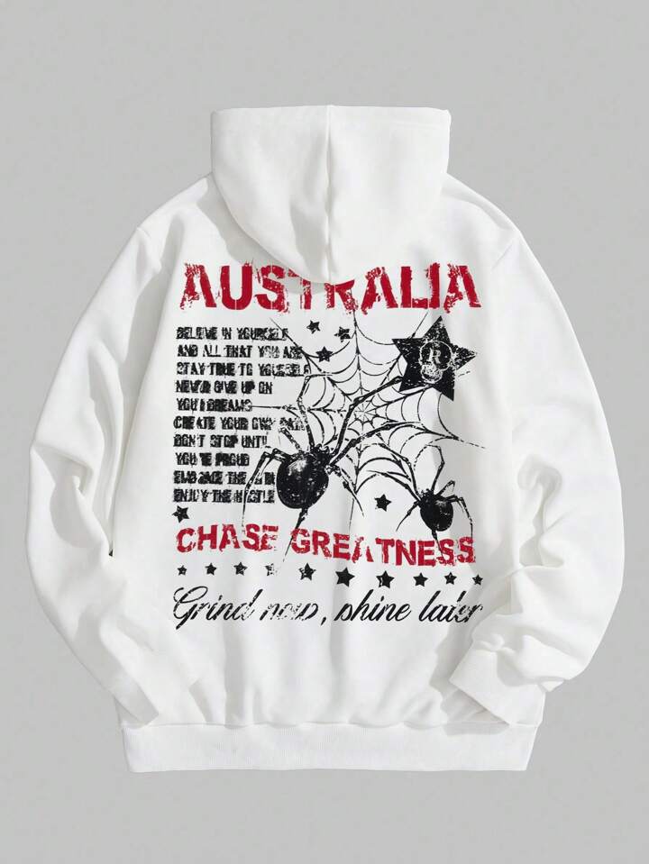 Goth Ragazzi Felpa con cappuccio slogan & ragno grafico con tasca a marsupio con coulisse