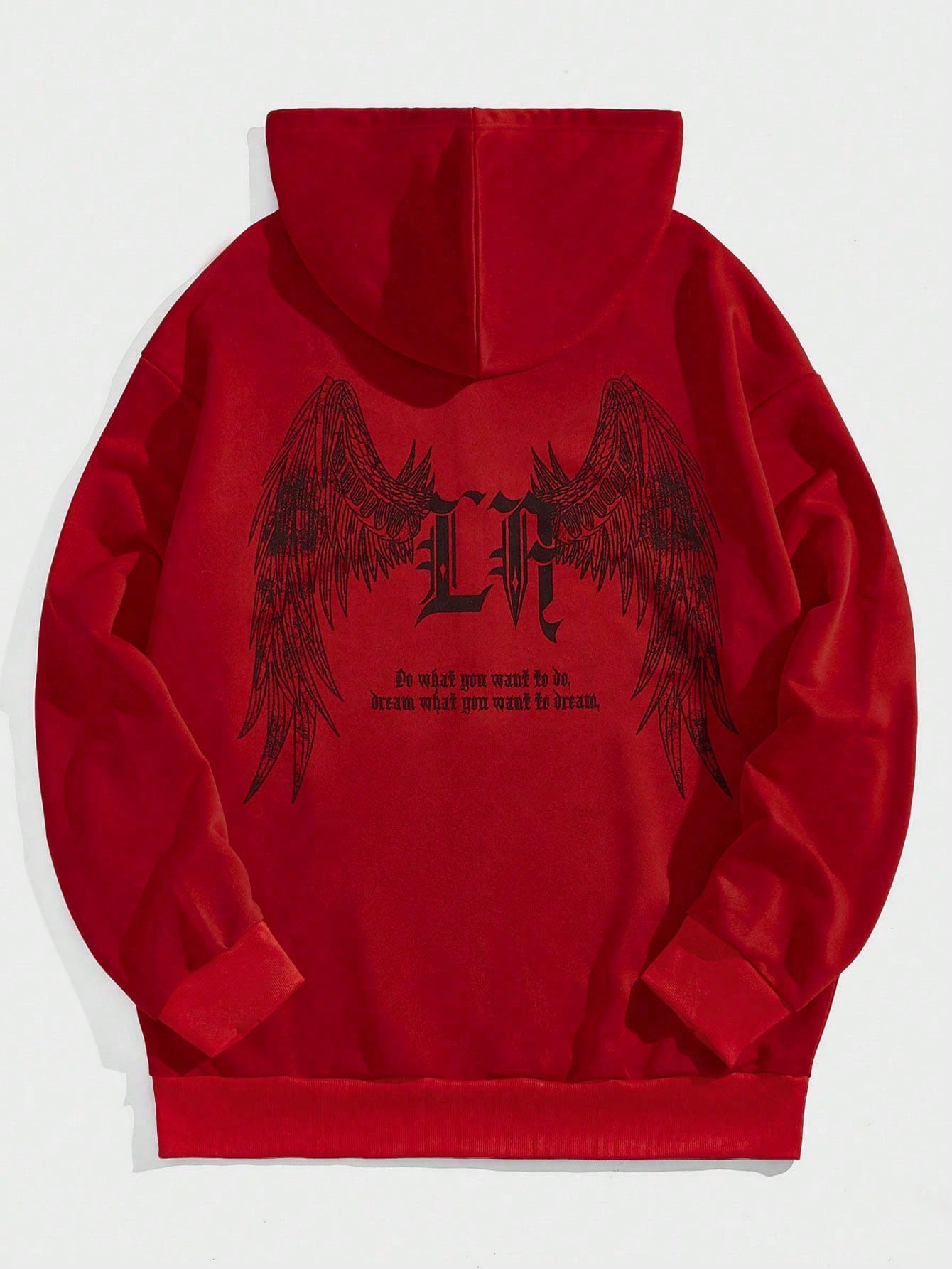 Goth Ragazzi Felpa con cappuccio stampa slogan e ala con tasca a marsupio con coulisse