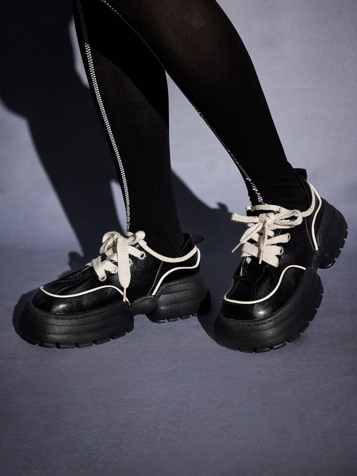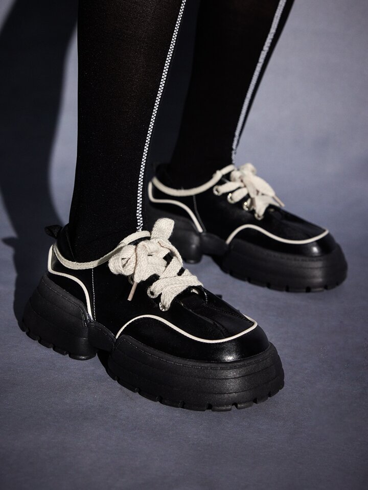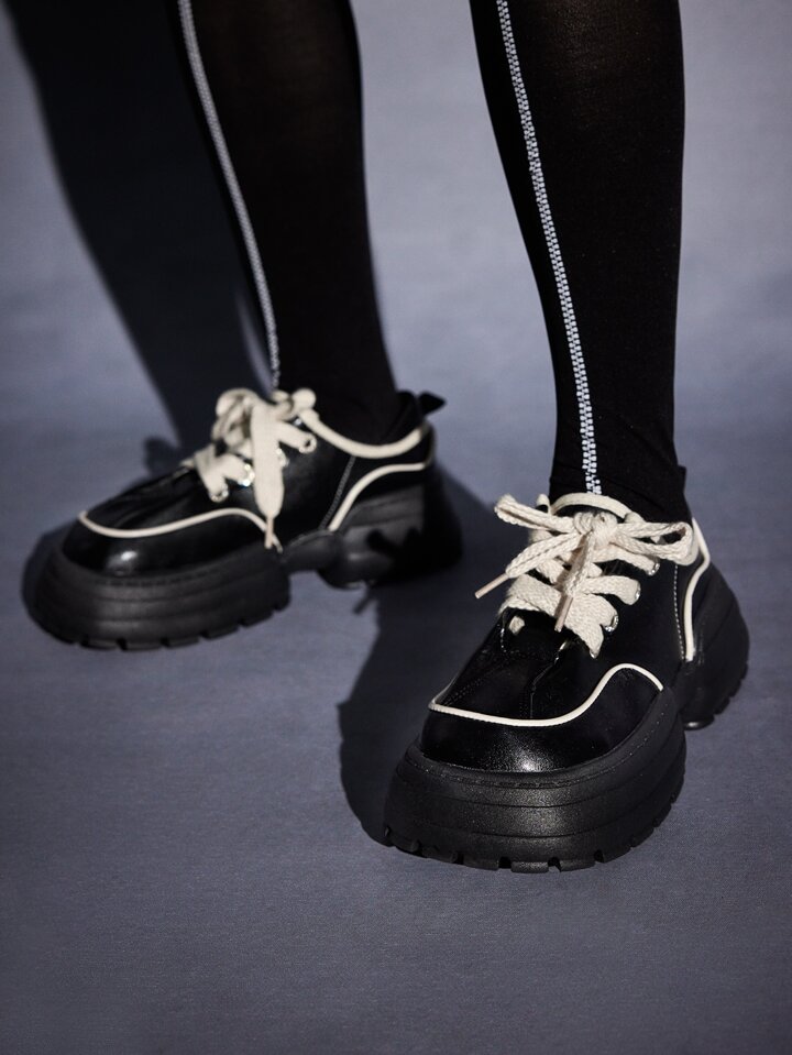 Goth Scarpe di Oxford lacci sul davanti con punta quadrata piattaforma