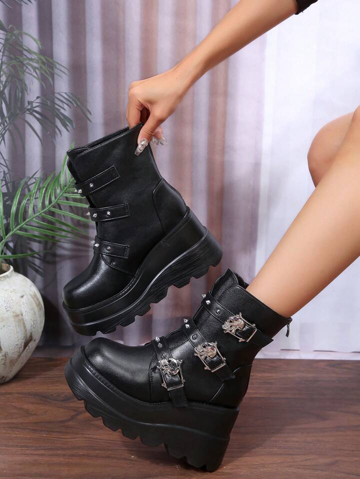 Goth Stivaletti Alla Caviglia Da Donna Con Decorazione A Teschio