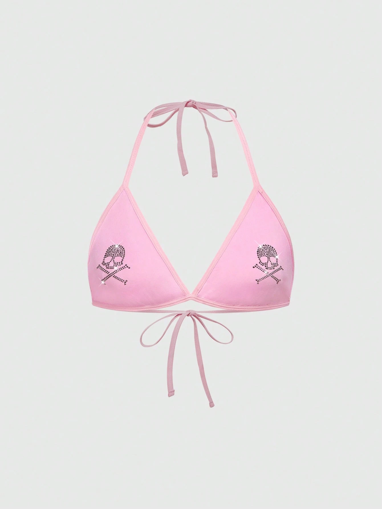 Goth Reggiseno adesivo da donna con lacci, decorazione con strass e teschio