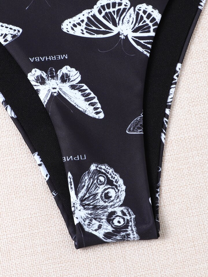 Goth Bottom bikini lettere con grafica farfalla con lacci laterali