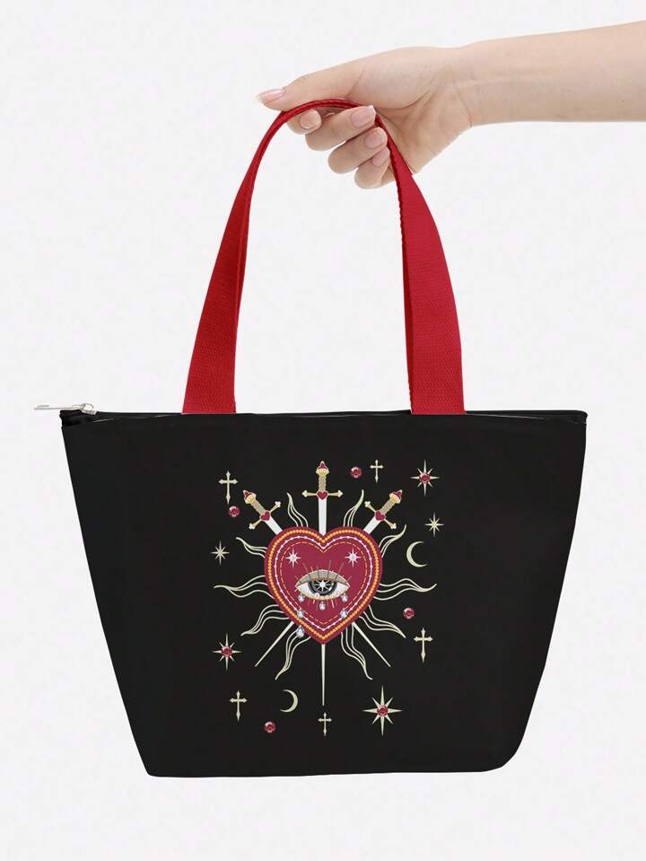 Goth Borsa per il pranzo, adatta per lavoratori d'ufficio, studenti, in colori preppy a blocchi