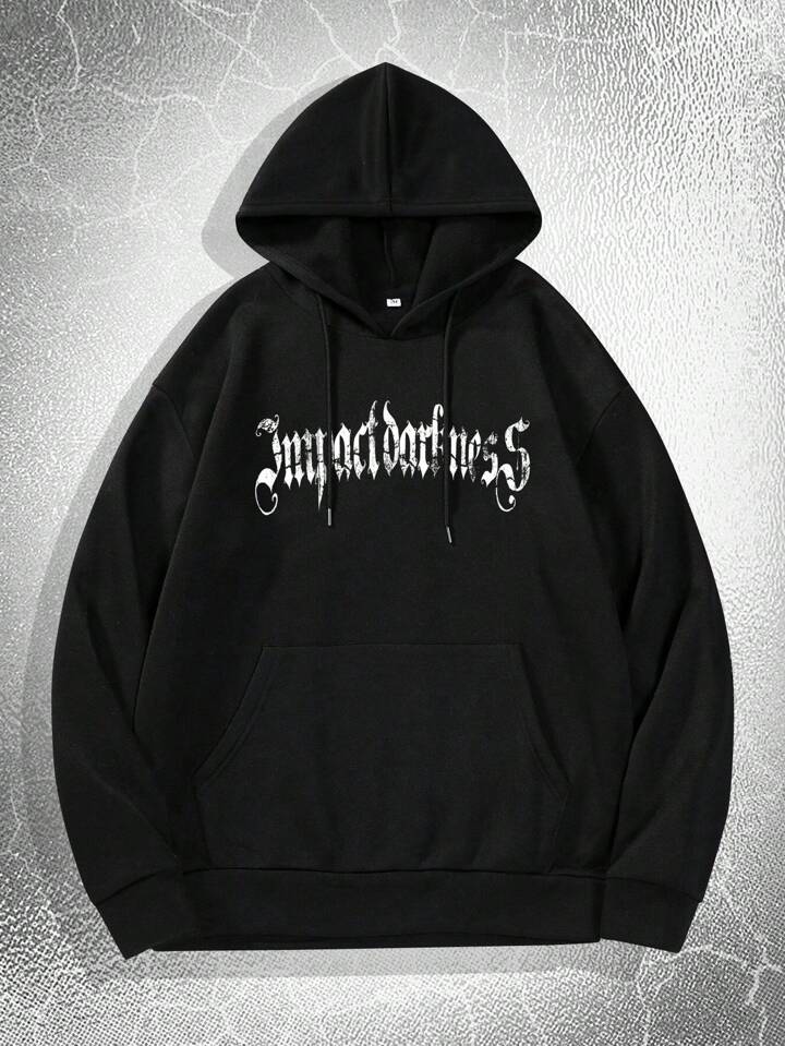 Goth Felpa Con Cappuccio Da Uomo Con Tasca A Marsupio E Stampa Incrociata Con Coulisse