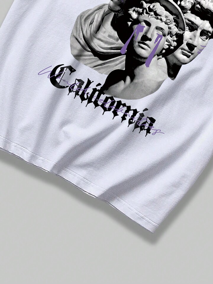 Goth T-shirt da uomo a maniche corte con stampa di sculture e testi