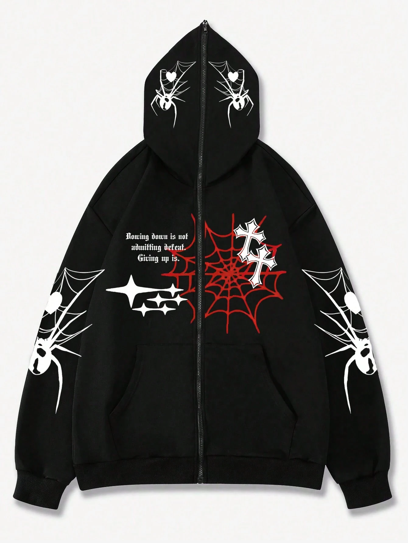 Goth Uomo Felpa Con Cappuccio A Stampa Di Ragnatela E Zip