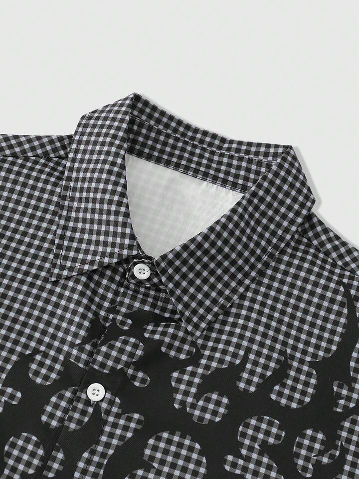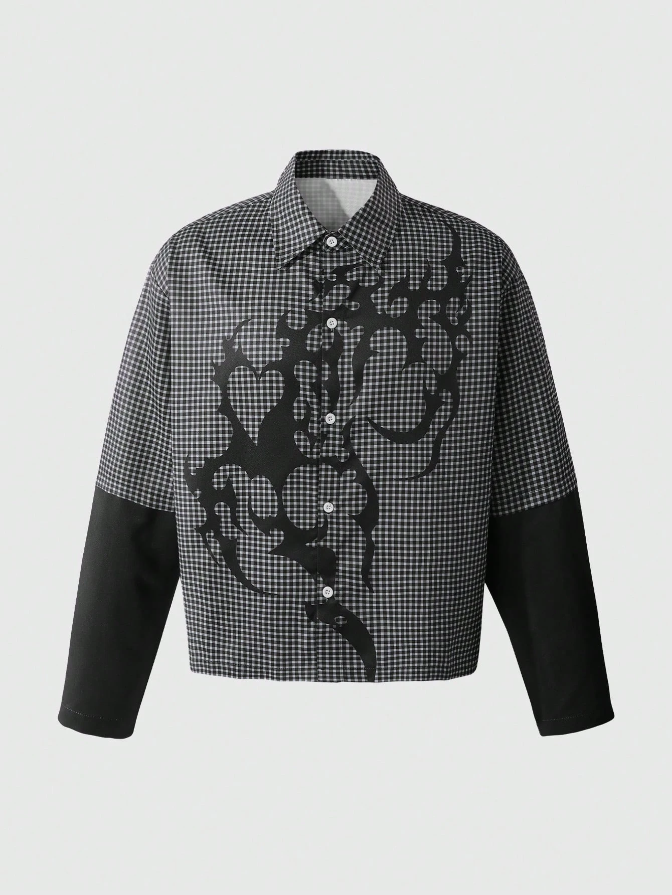 Goth Camicia da uomo autunnale alla moda con motivo a quadri patchwork 2 in 1