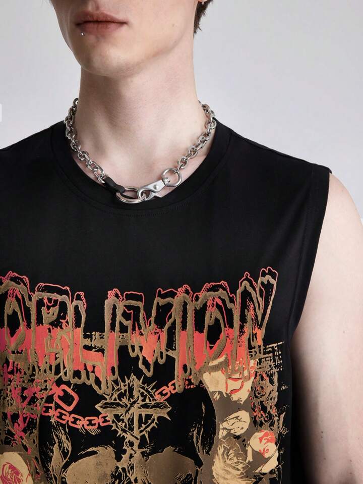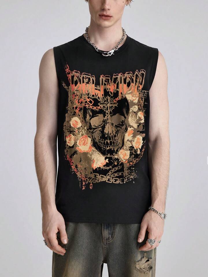 Goth Canotta casual estiva con grafica teschio consumata da uomo