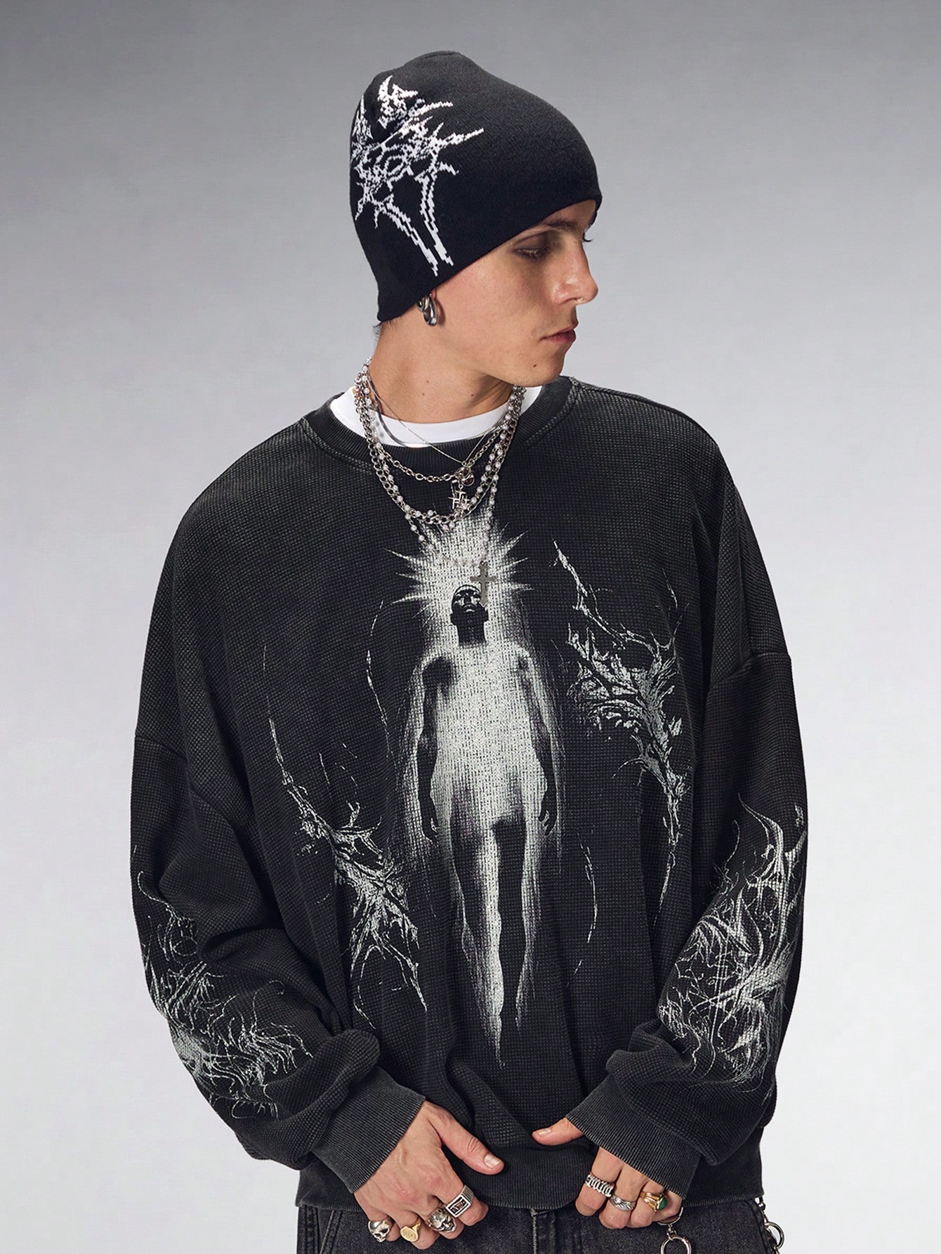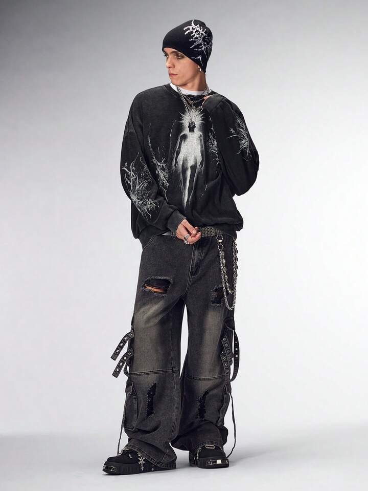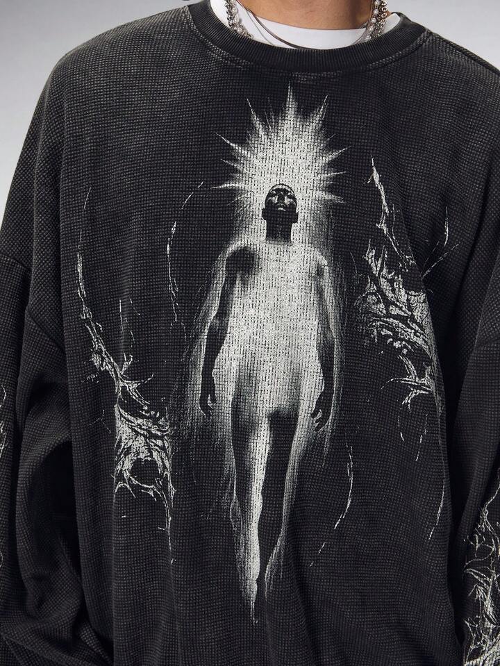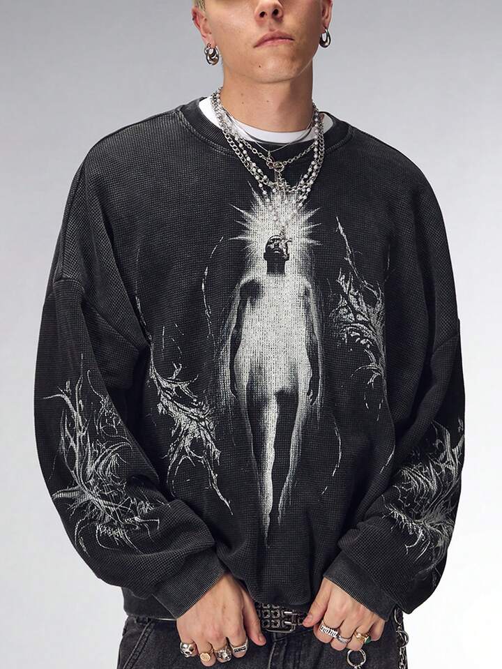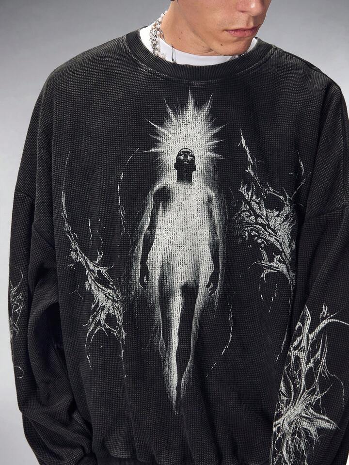 Goth Felpa girocollo casual da uomo con grafica ritratto, autunnale