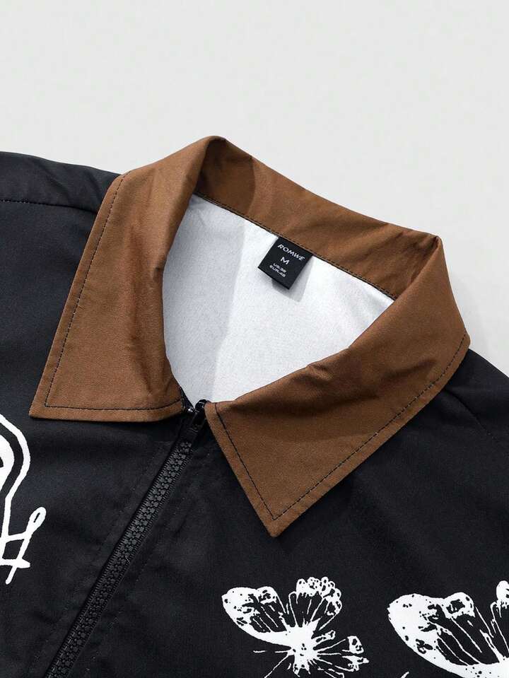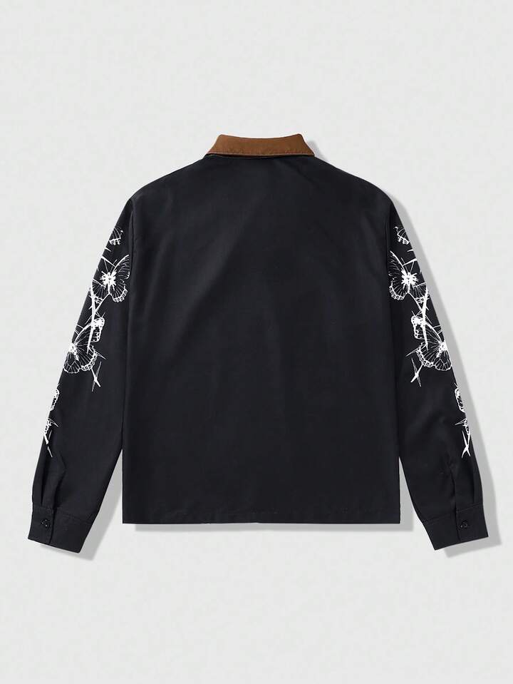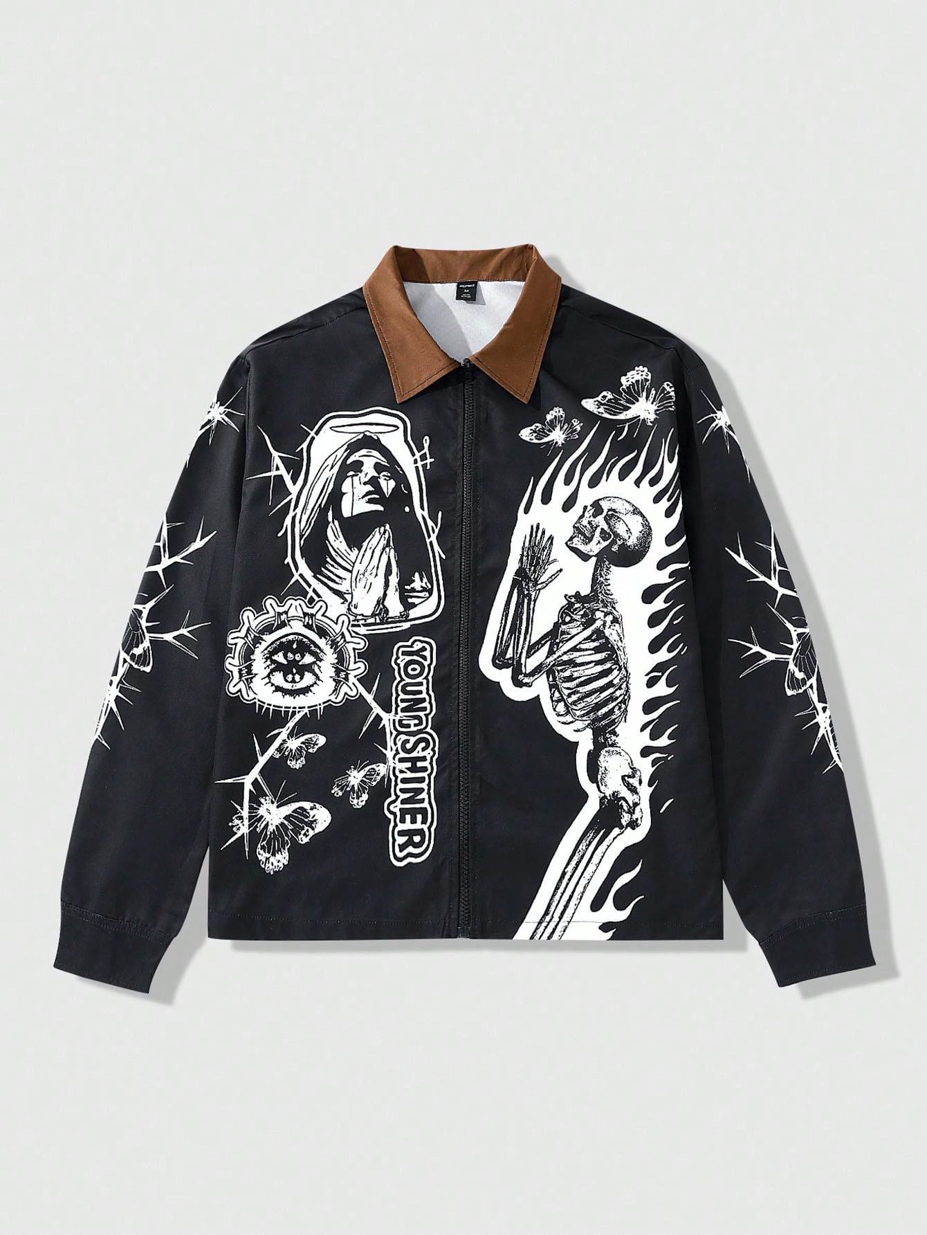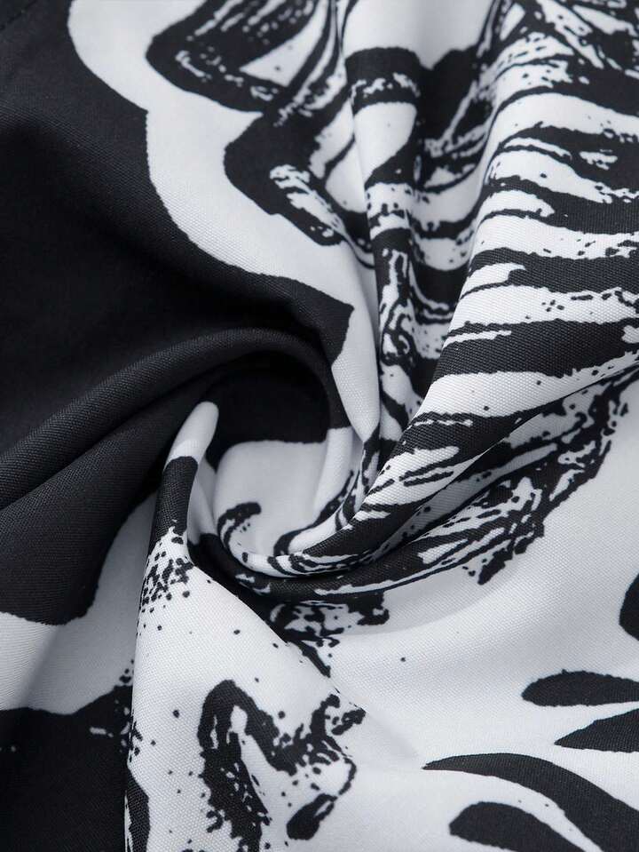 Goth Camicia casual da uomo con stampa di teschi e lettere, con chiusura lampo, autunnale