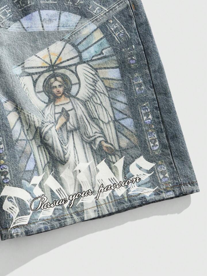 Goth Pantaloncini di jeans casual da uomo con stampa grafica, per l'estate