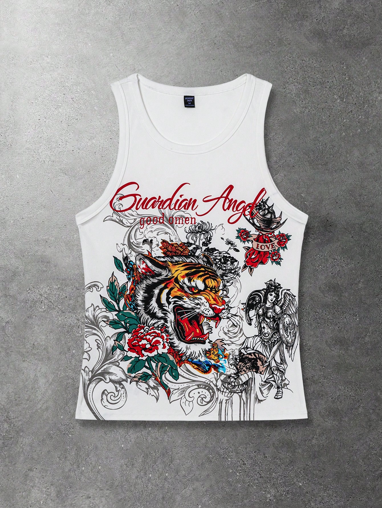 Goth Canotta aderente casual da uomo con stampa di tigre e lettera, estiva