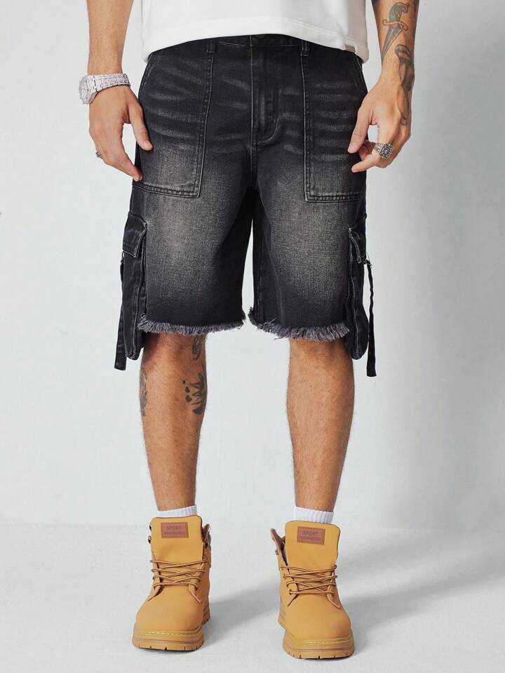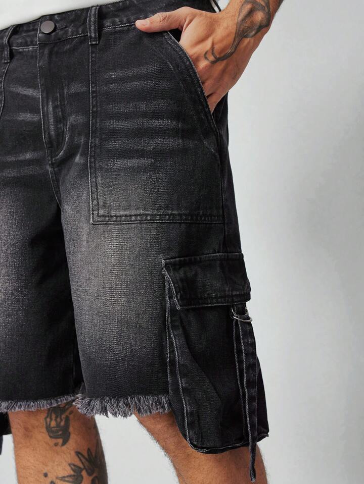 Goth Pantaloncini di jeans casual da uomo con orlo consumato e effetto strappato