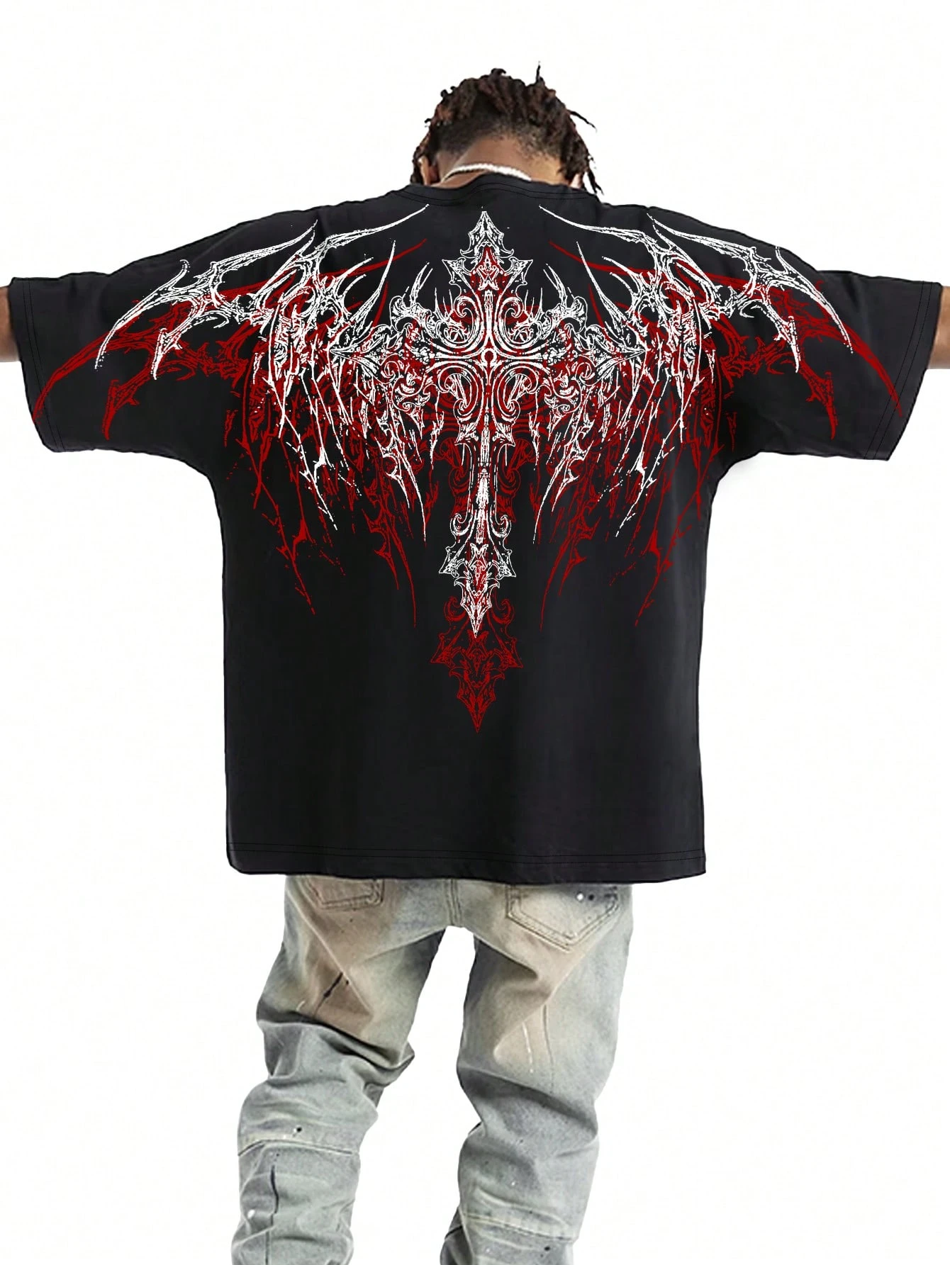 Goth T-shirt casual da uomo a maniche corte, girocollo, con stampa a croce, vestibilità ampia