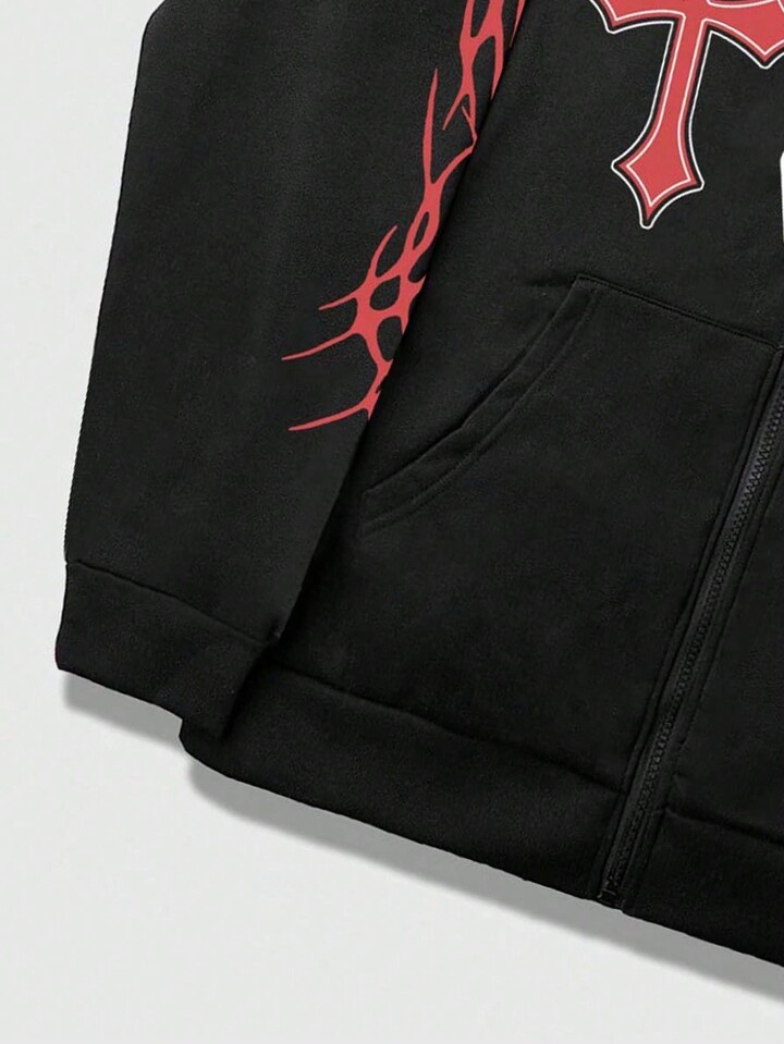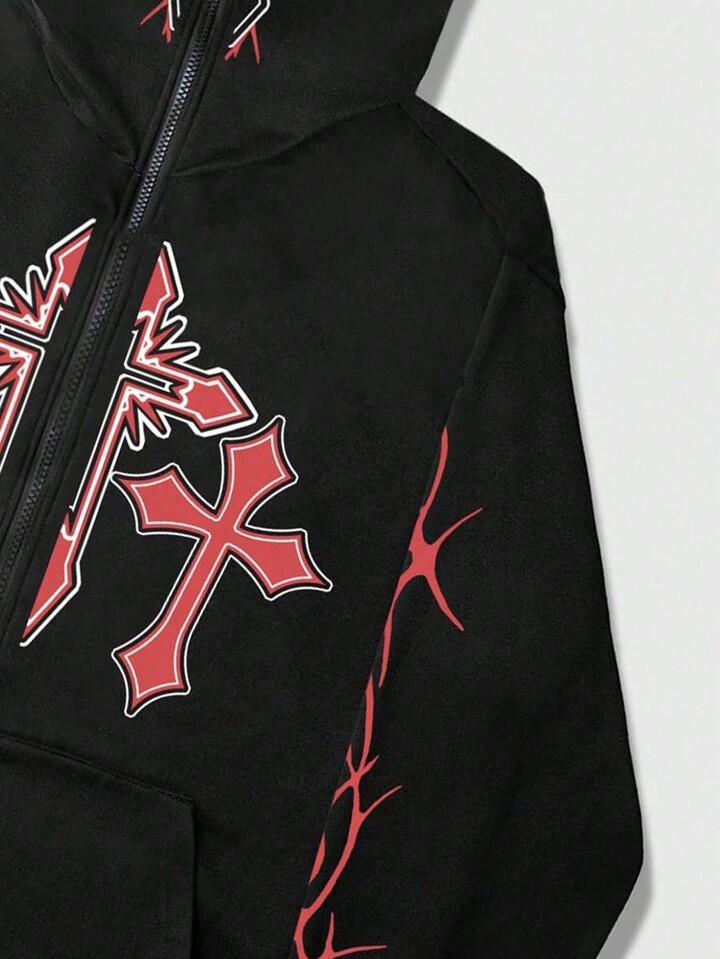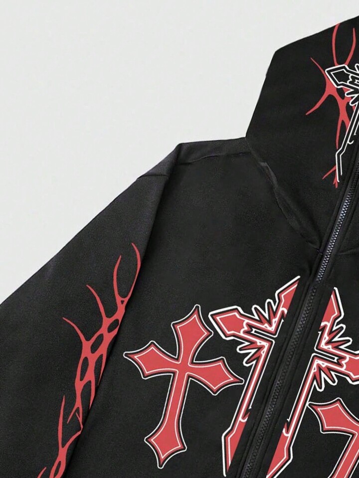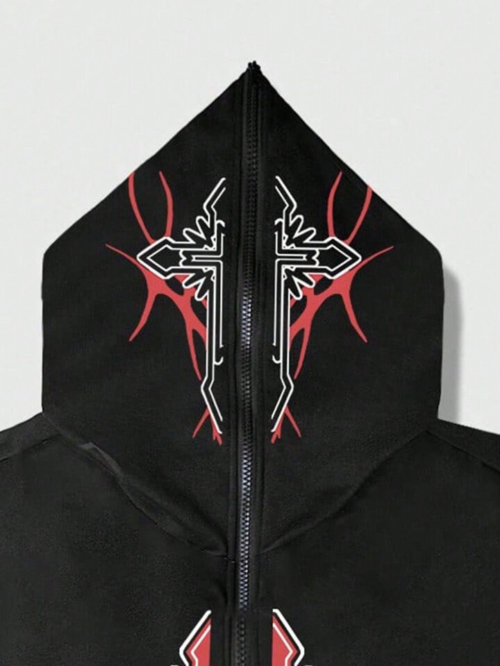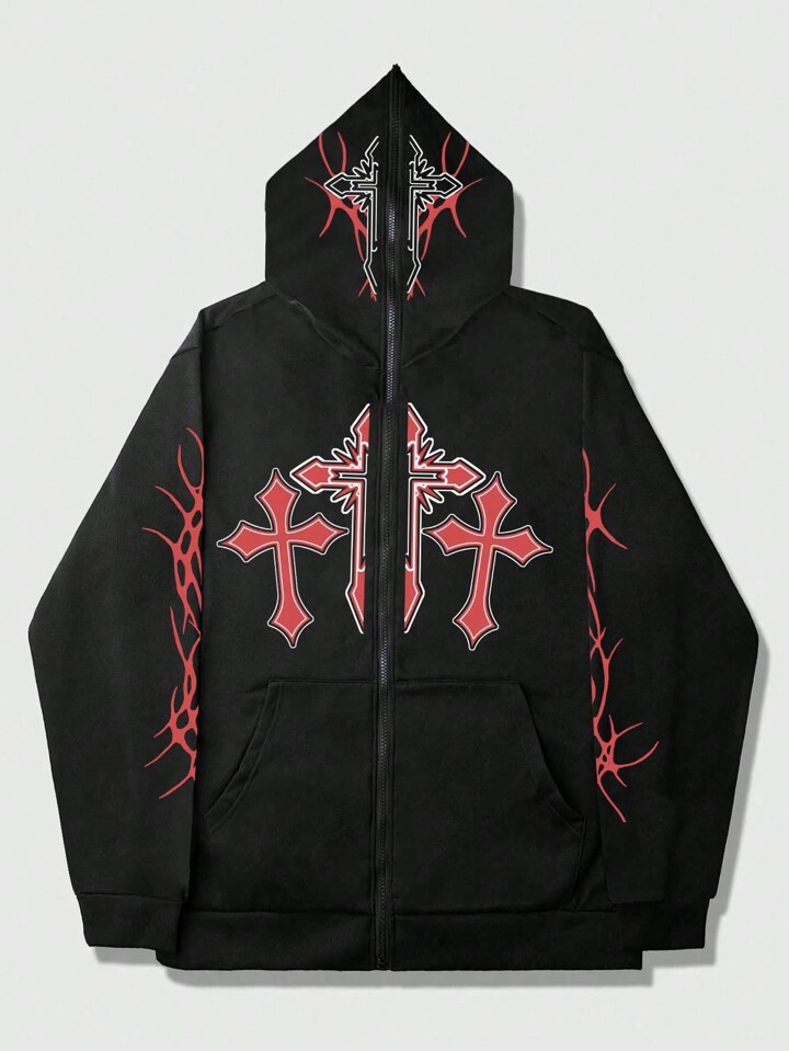 Goth Felpa Con Cappuccio E Zip Da Uomo Con Stampa Incrociata