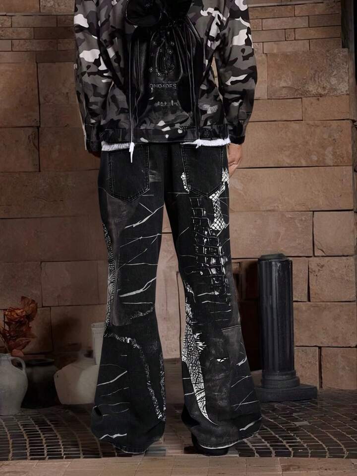 Goth Jeans in denim stampato da uomo, adatti per l'uso quotidiano, primavera/estate