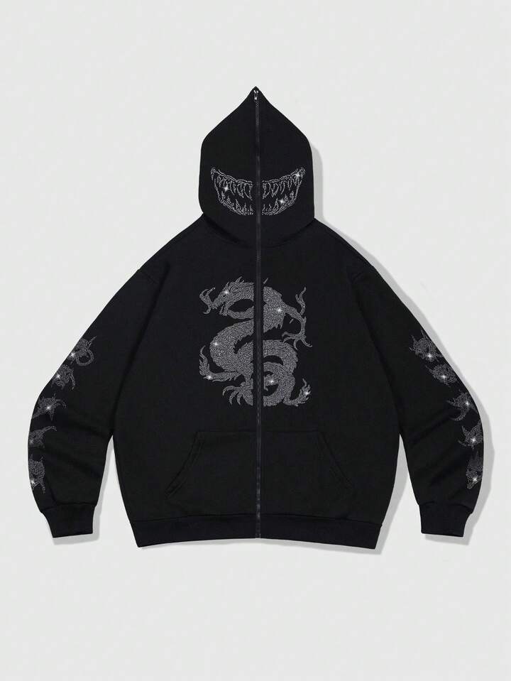 Goth Felpa con cappuccio e chiusura lampo da uomo, con stampa, di moda casual di strada