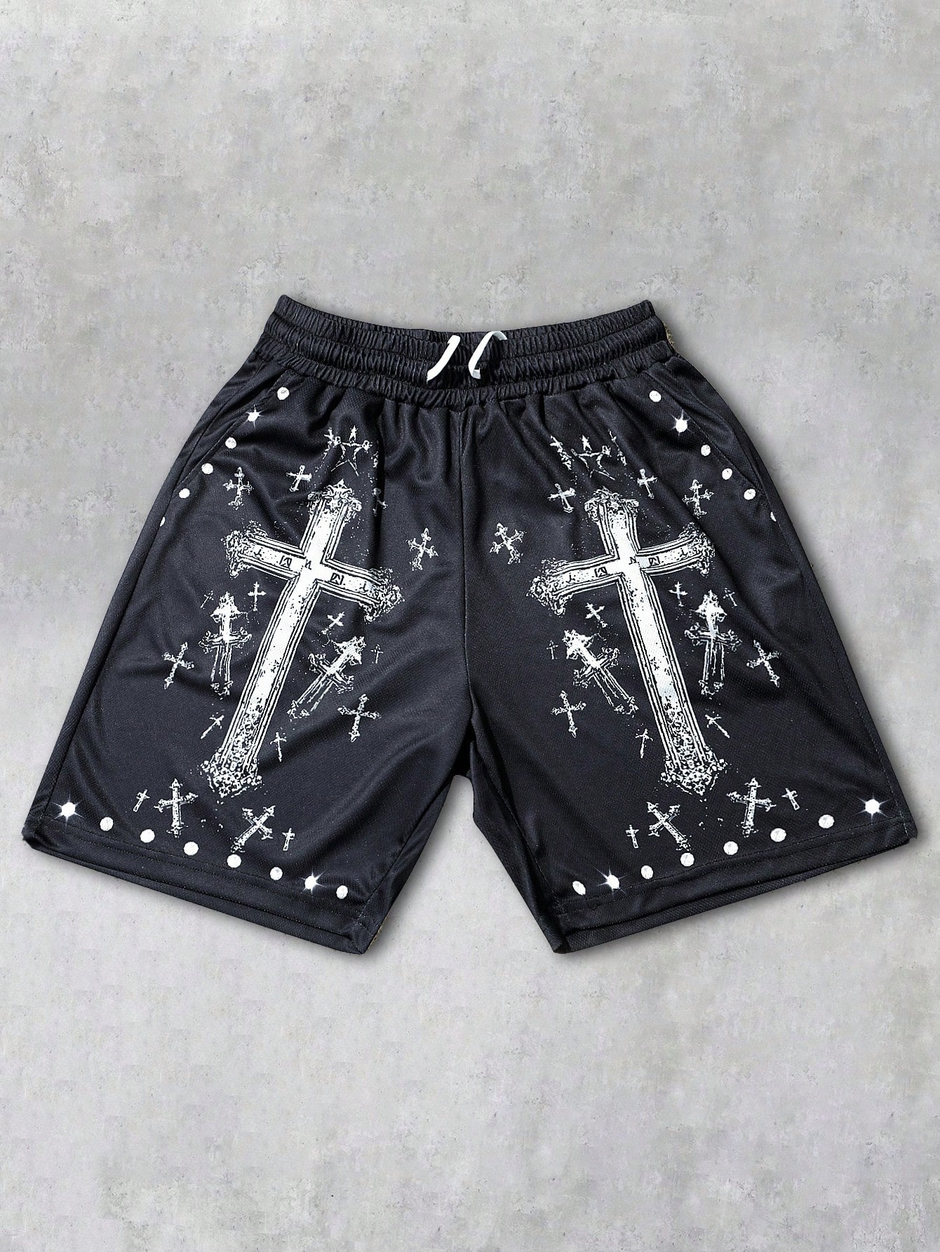 Goth Pantaloncini casual da uomo con vita con coulisse e tasche, stampa a croce, versatili per uso quotidiano