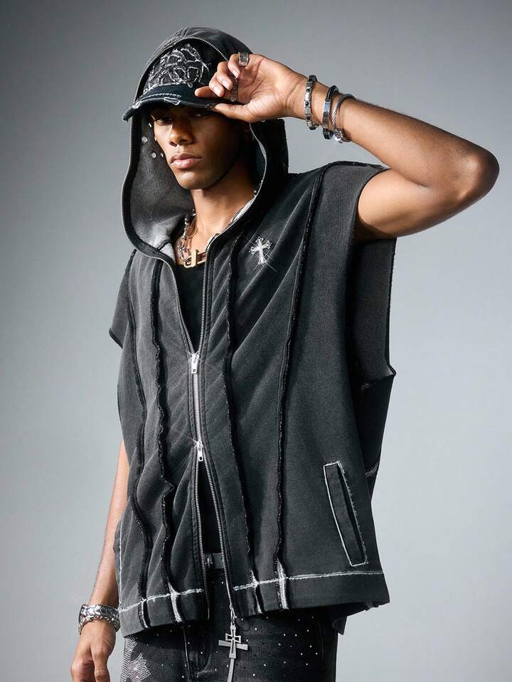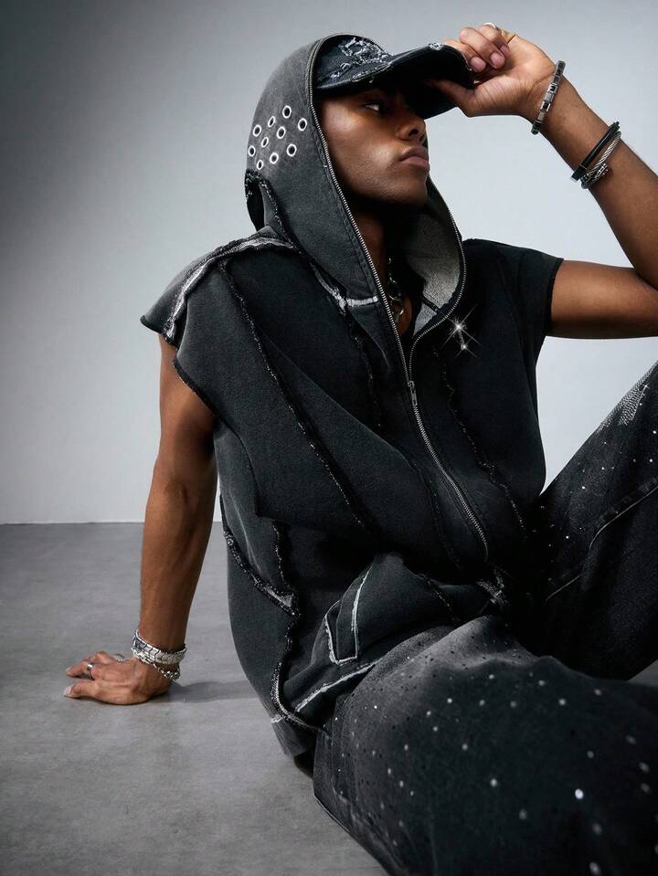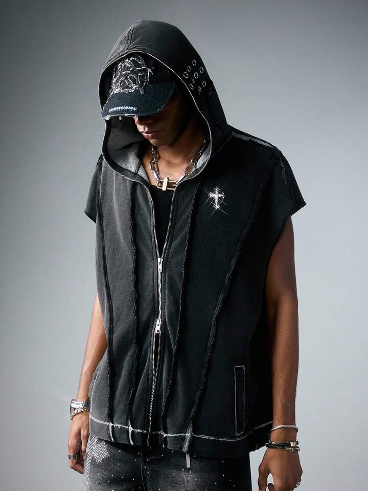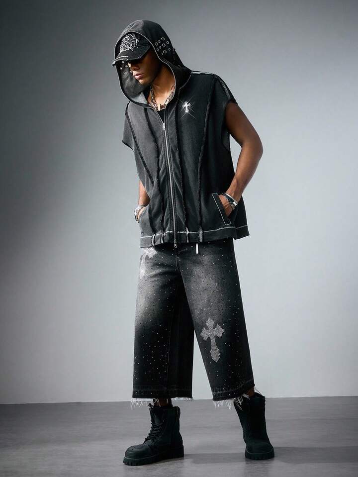 Goth Giacca di jeans con cappuccio alla moda da uomo