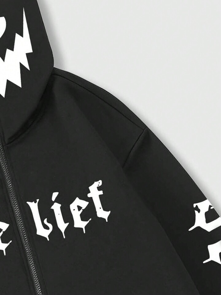 Goth Felpa Con Cappuccio Con Zip Per Uomo Con Stampa Lettere E Cartoni Animati
