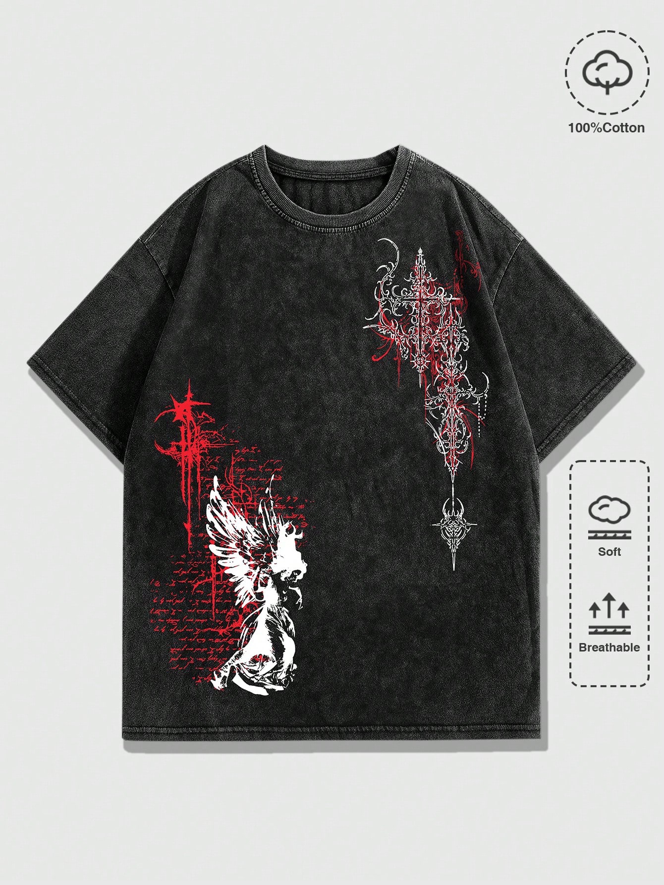 Goth T-shirt a maniche corte con scollo rotondo e stampa minimalista da uomo