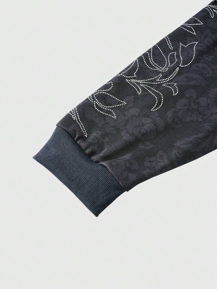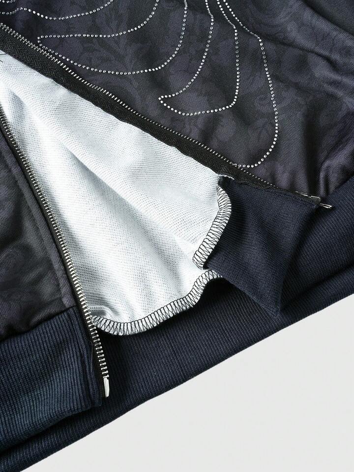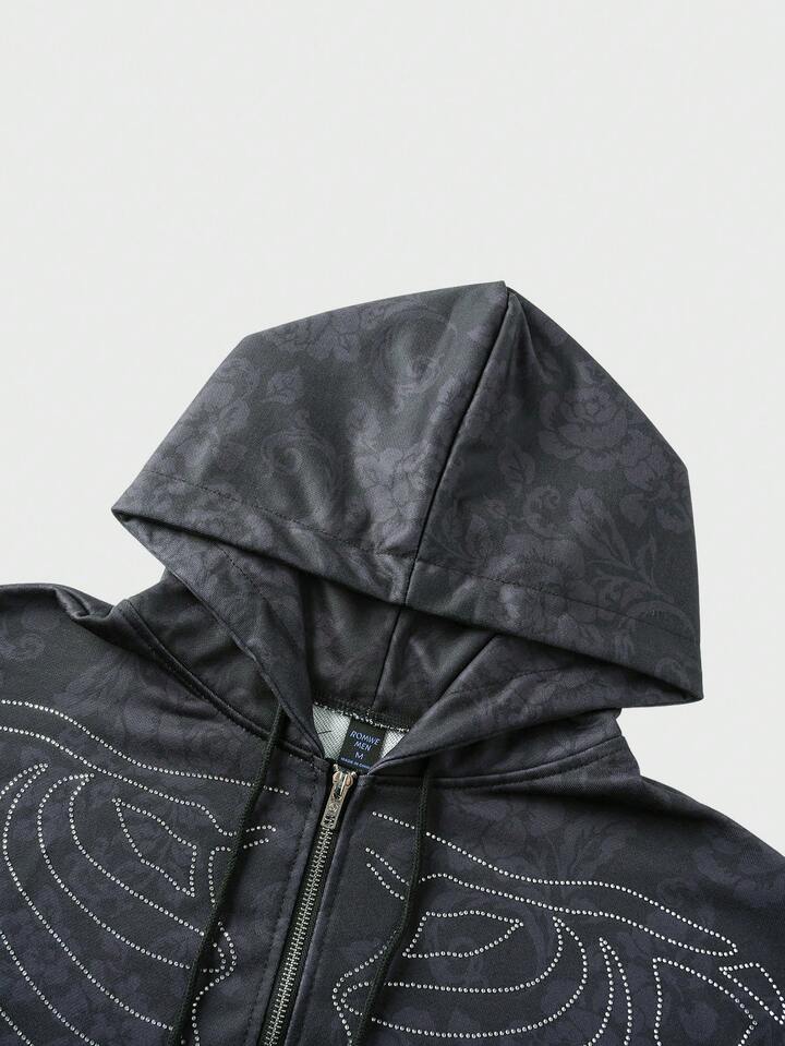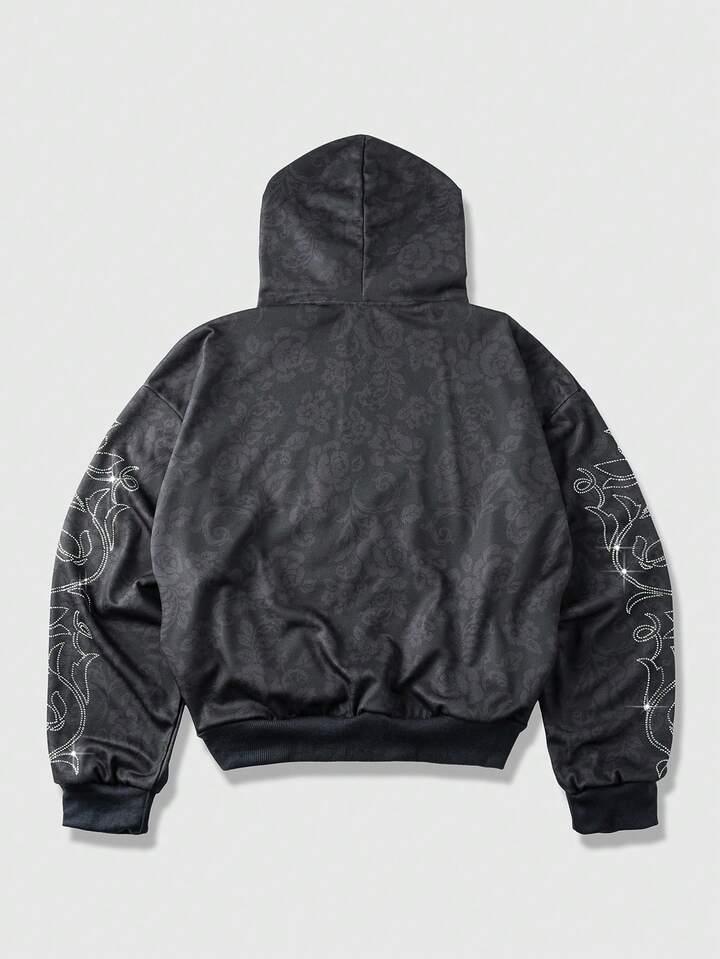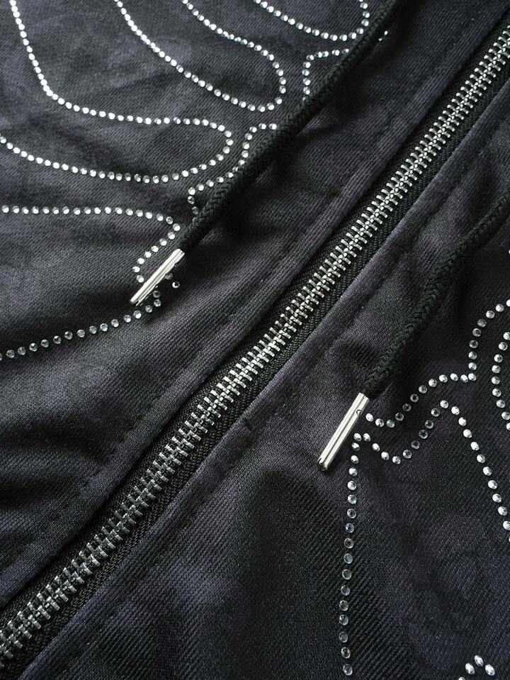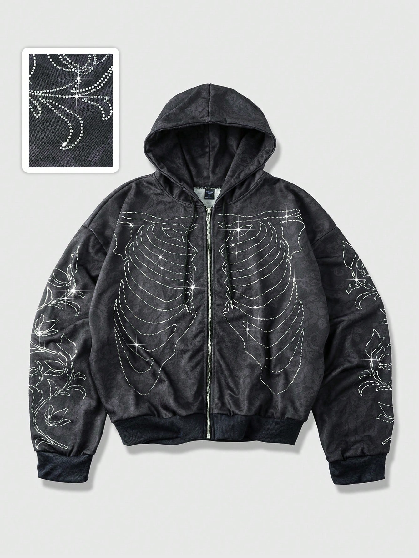 Goth Felpa con cappuccio da uomo con stampa di scheletro in strass e chiusura lampo frontale con coulisse