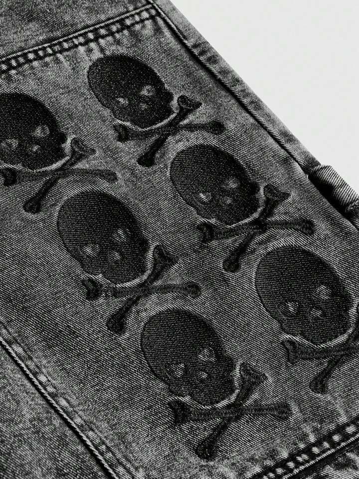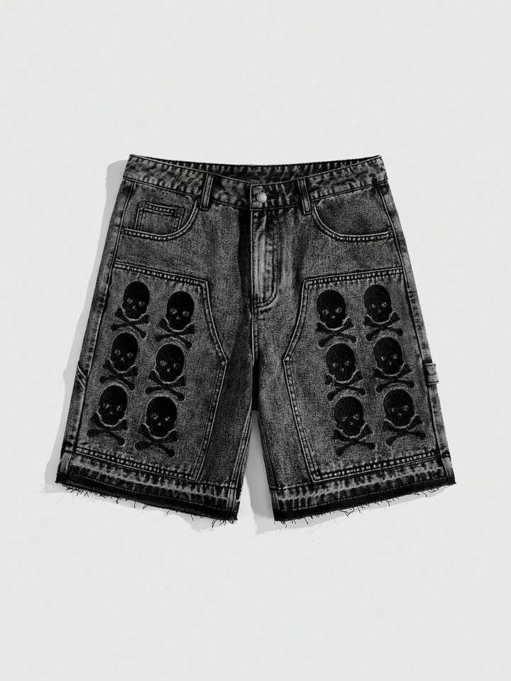 Goth Pantaloncini casual in denim con ricamo scheletro, adatti per Ognissanti