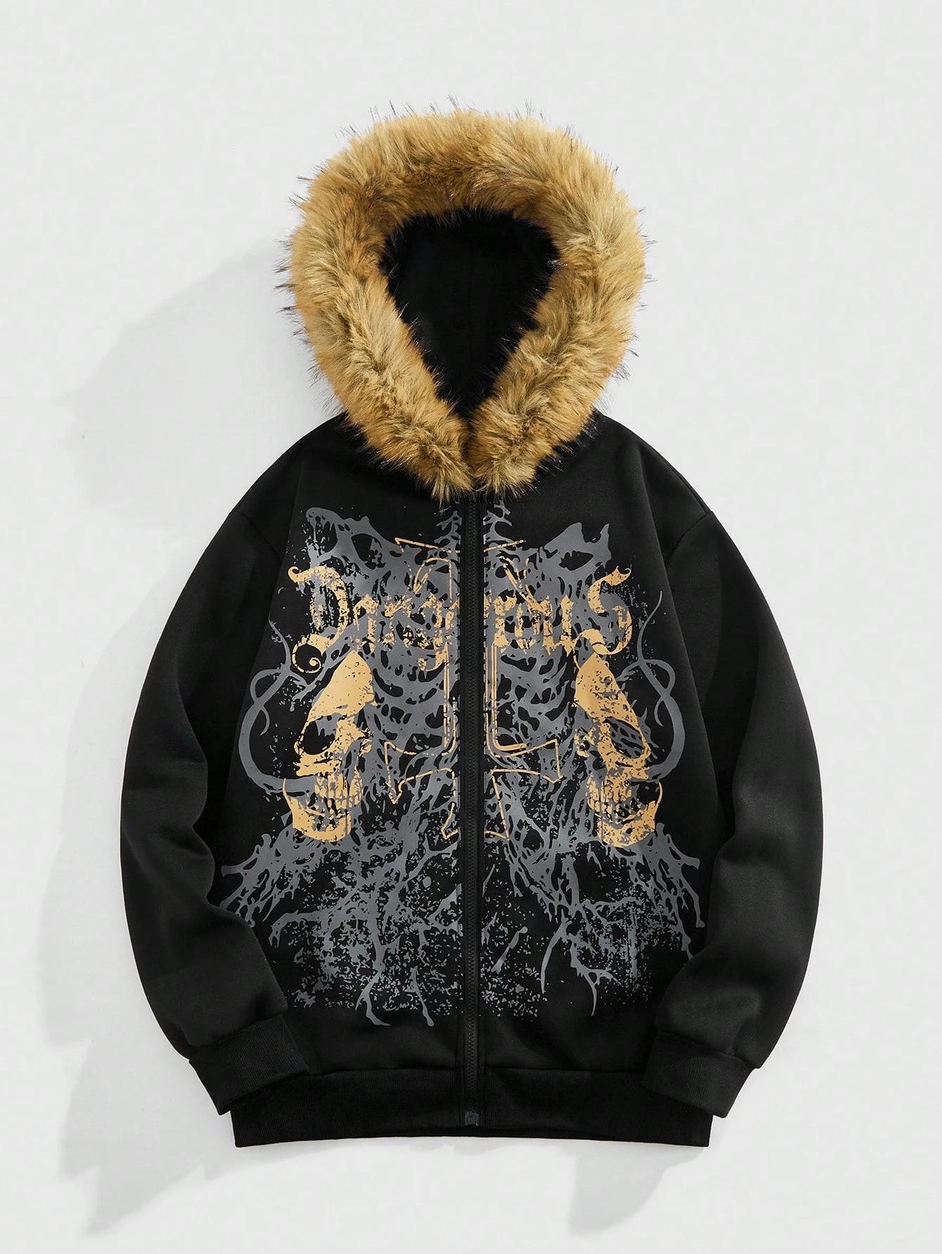 Goth Felpa con cappuccio con chiusura lampo e stampa teschio da uomo, casual, per autunno/inverno