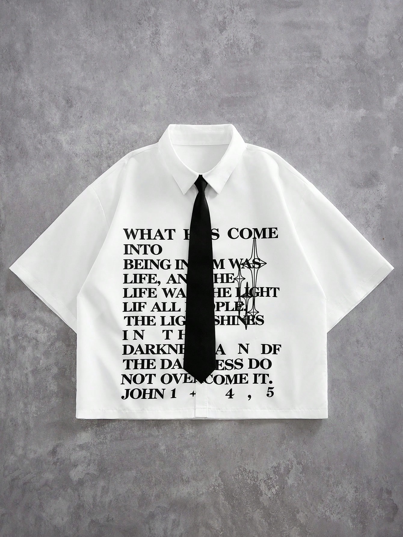 Goth Camicia a maniche corte con stampa slogan, stile Dark Academia per uomo