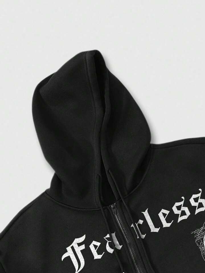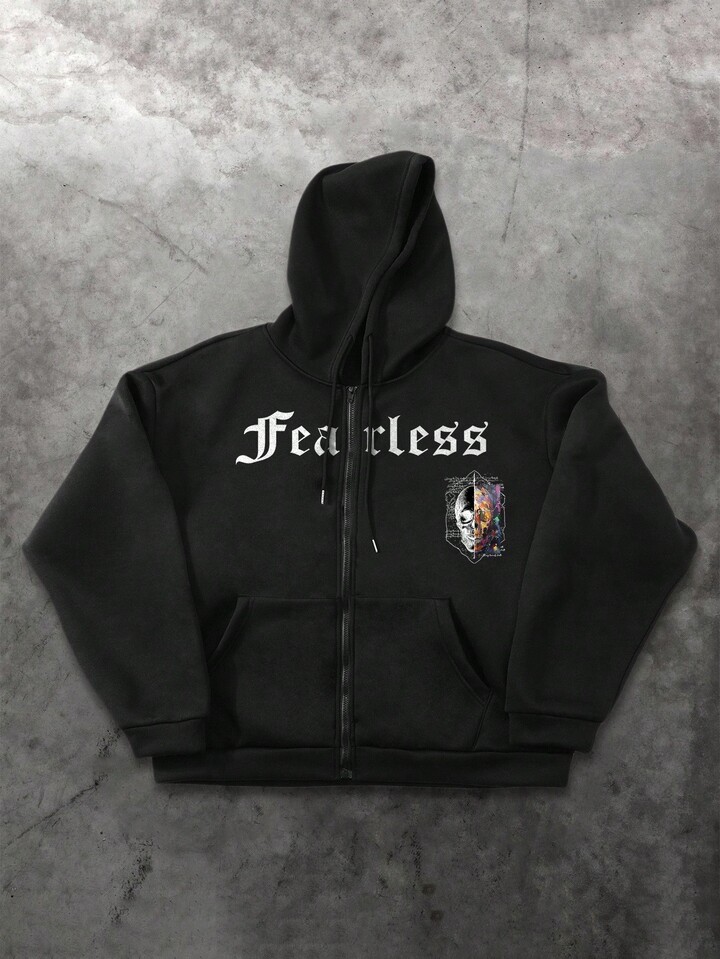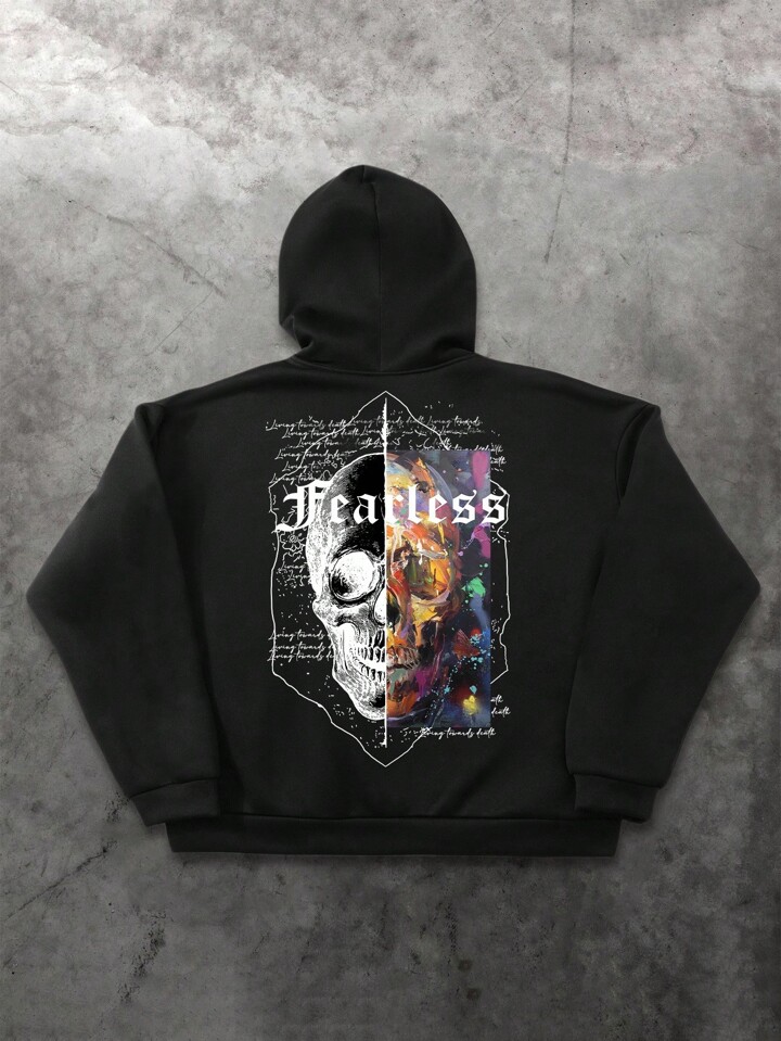 Goth Felpa con cappuccio con chiusura lampo e stampa grafica a teschio per uomo