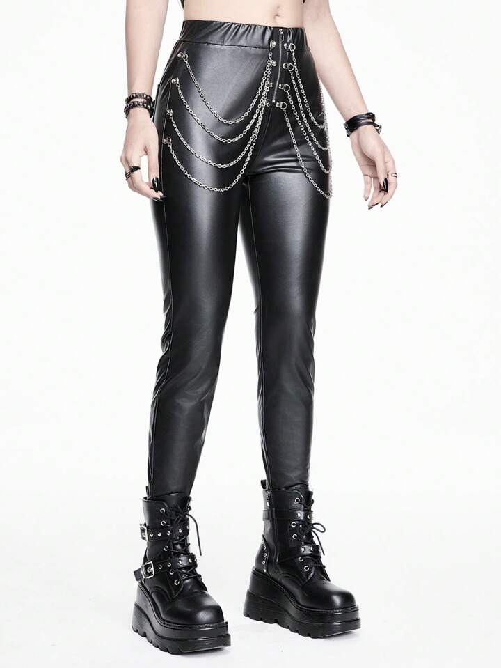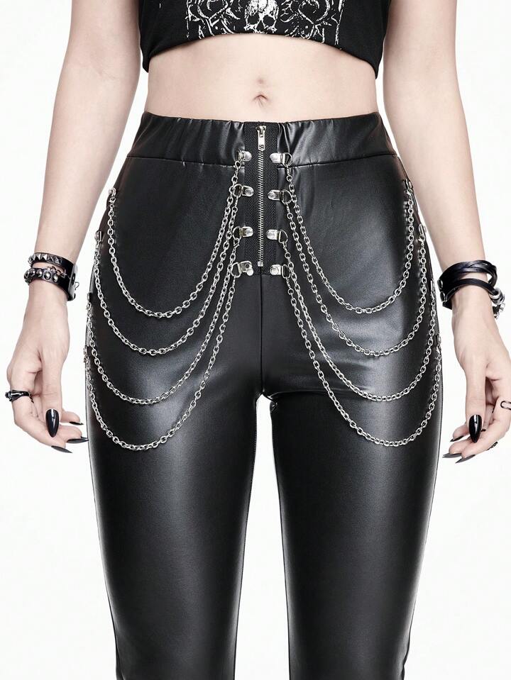 Goth Pantaloni Stretti Stile Punk con Catena Metallica per le Donne