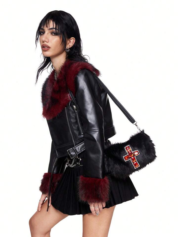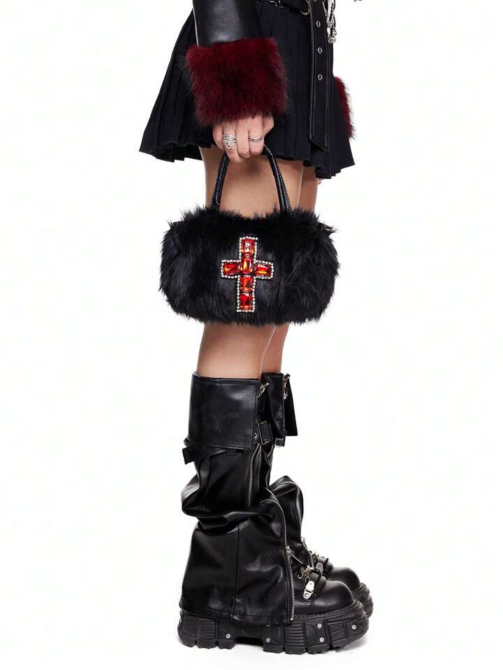 Goth Borsa a mano in peluche stile Millennium Y2K, Subcultura Punk, Borsa a tracolla, Borsa a Tracolla 3 in 1, Regalo e per Festa
