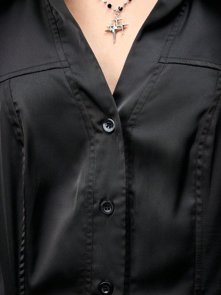 Goth Moderna camicia scollo a V slim fit in acetato e raso, stile urbano d'ufficio