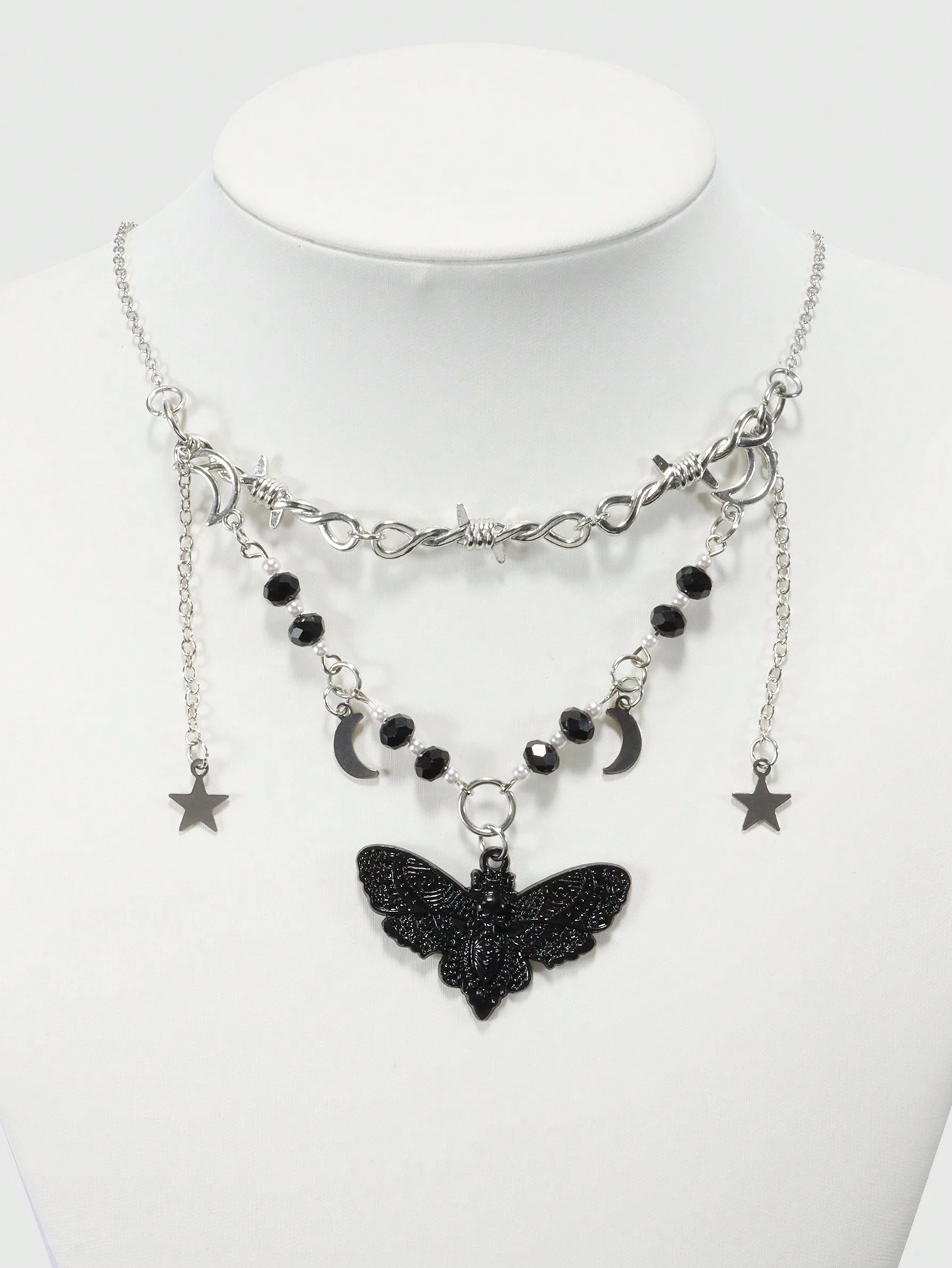 Goth Collana a strati decorazione luna e stella insetto pendente