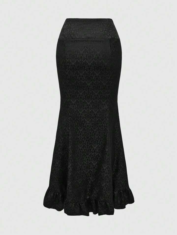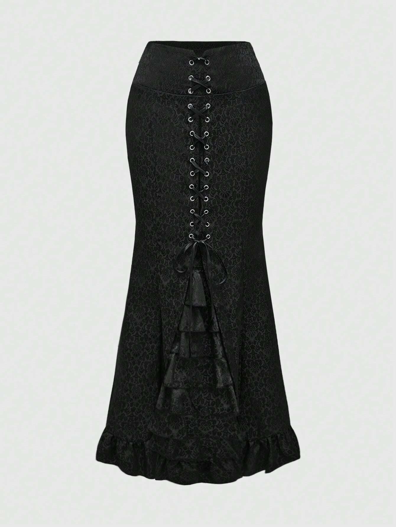 Goth Gonna lunga da donna con spacco laterale, decorata con motivi floreali e a viticci in stile palazzo vintage, con fiocco