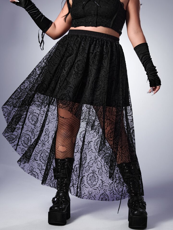 Goth Gonne taglie forti Contrasto Mesh Alto Basso stampa dappertutto Casual