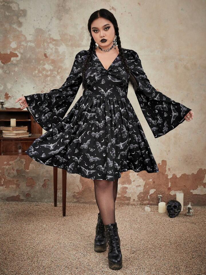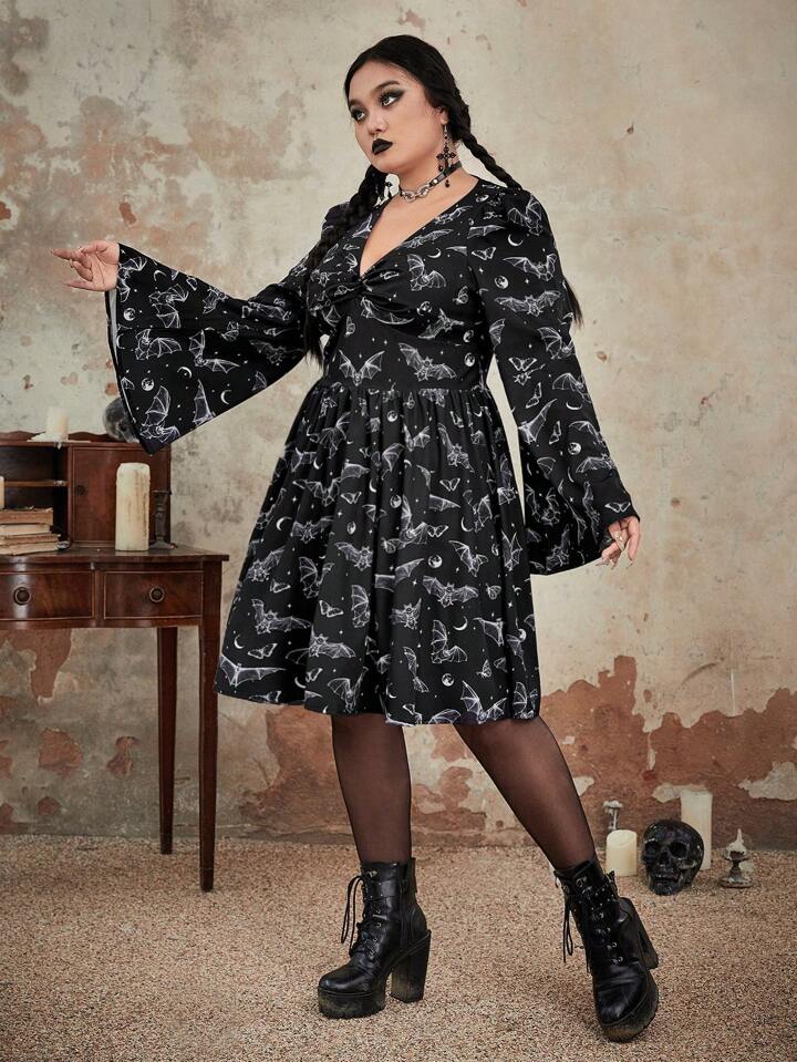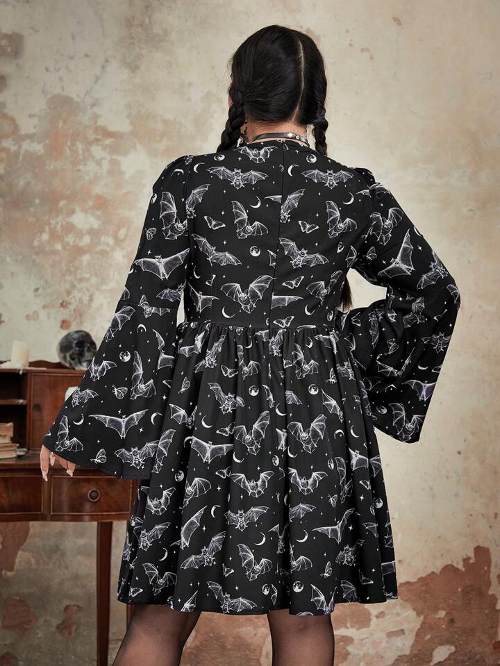 Goth Taglie Forti Abiti con tampa pipistrello con manico svasato con nodo
