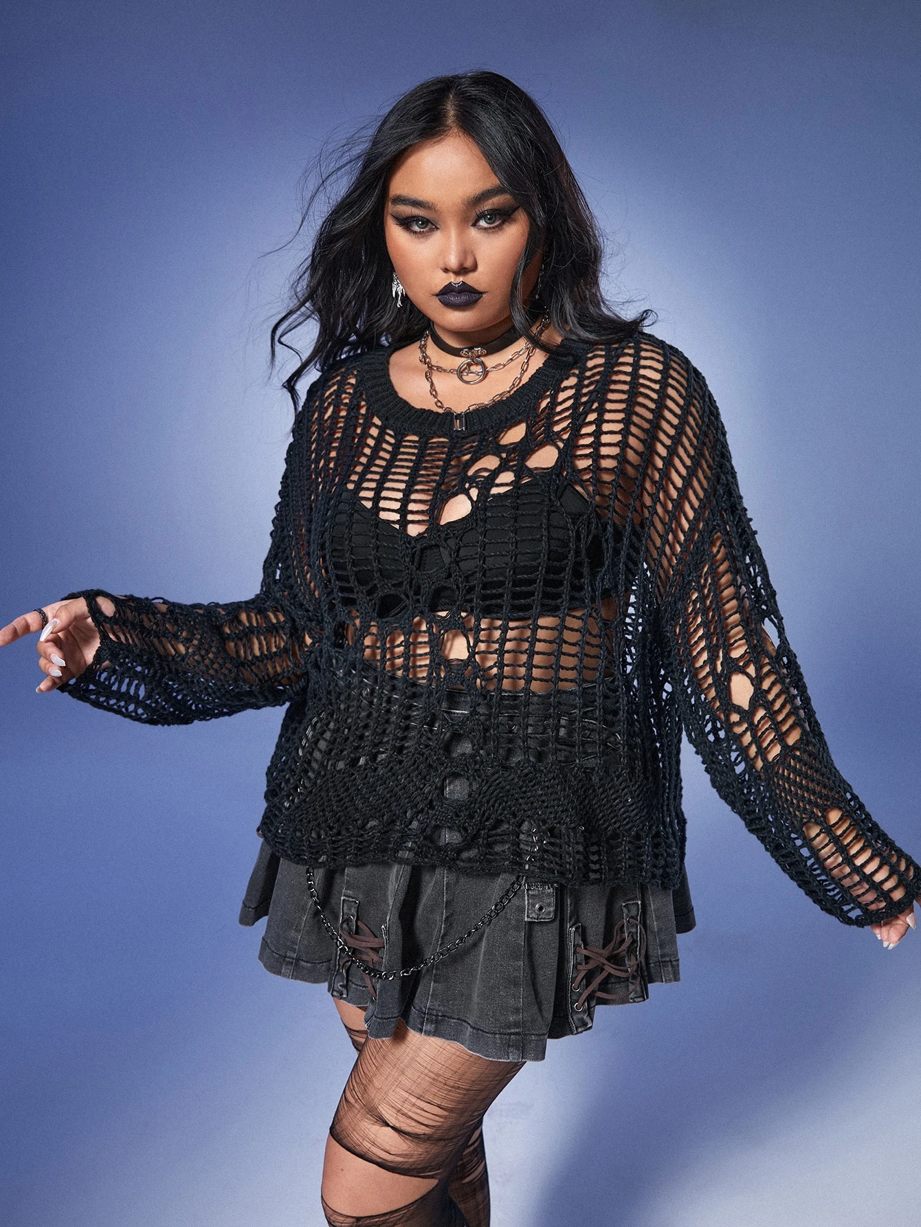 Goth Taglie Forti Maglione scavato spalle cadenti senza reggiseno