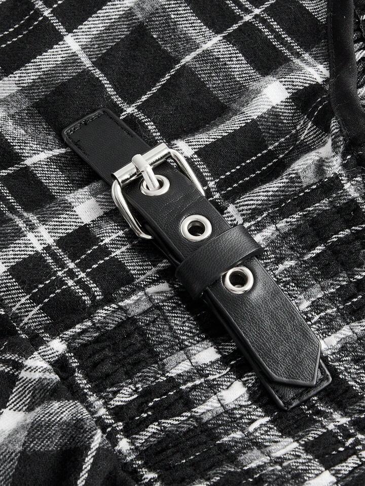 Goth Taglie Forti Abito salopette con stampa quadri con zip senza camicetta