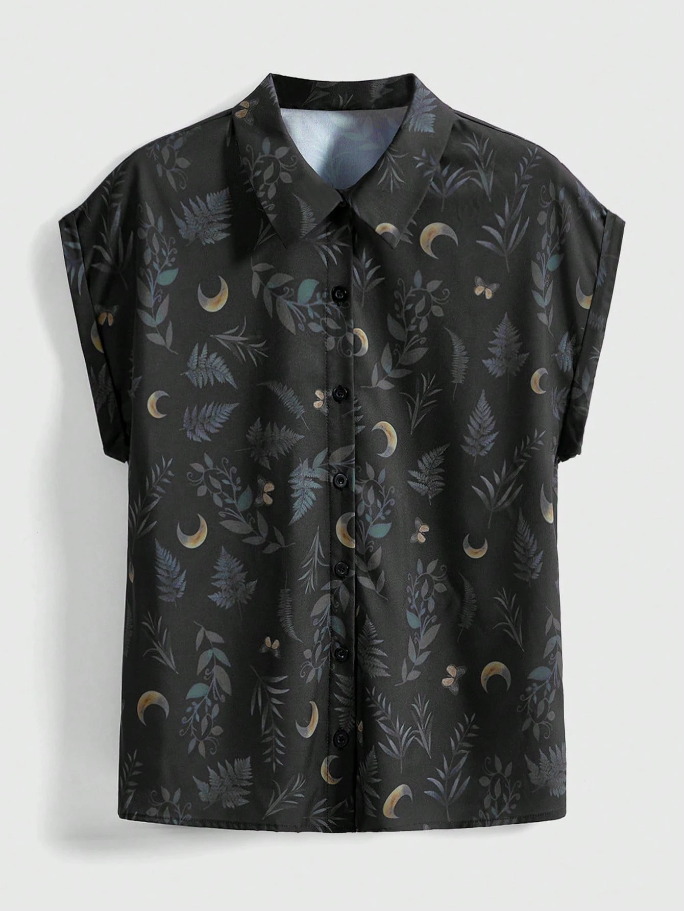 Goth Camicia casual da donna taglie forti con stampa all-over di stelle scure, luna e foglie