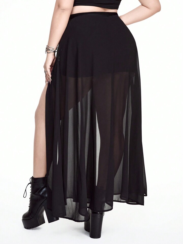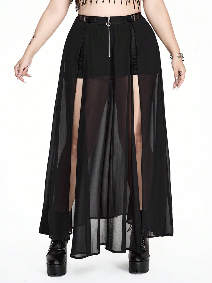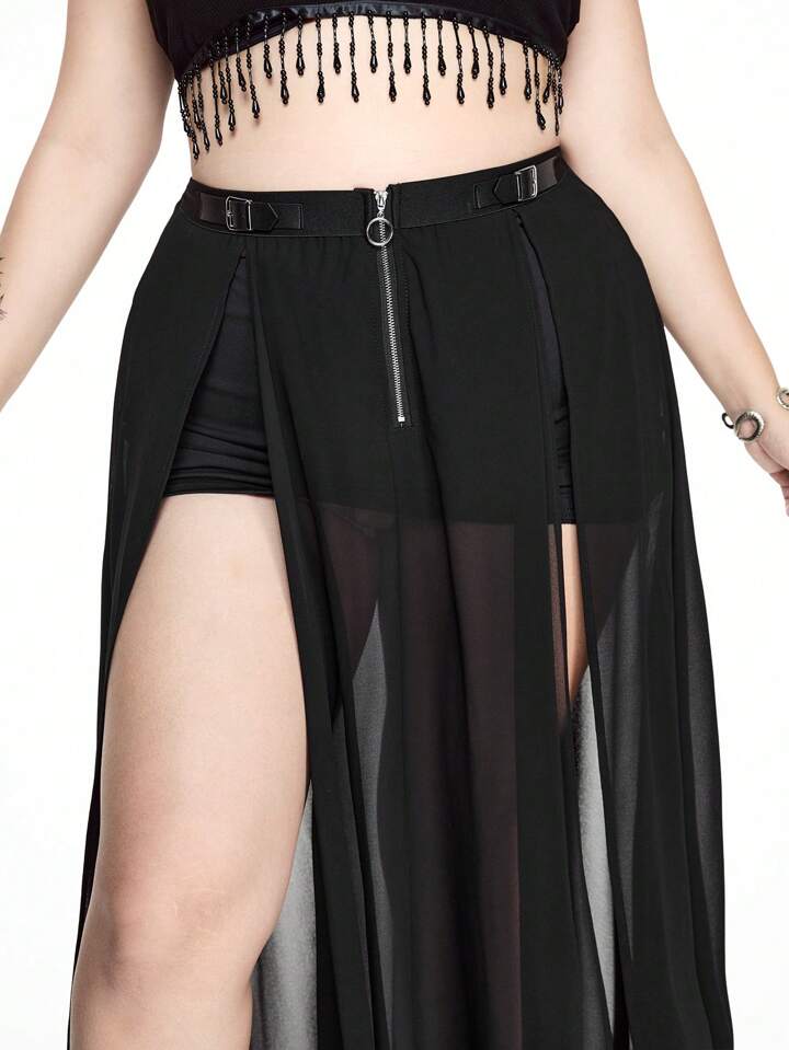 Goth Minigonna sexy taglie forti, con toppe in chiffon e pelle sintetica, con fibbia