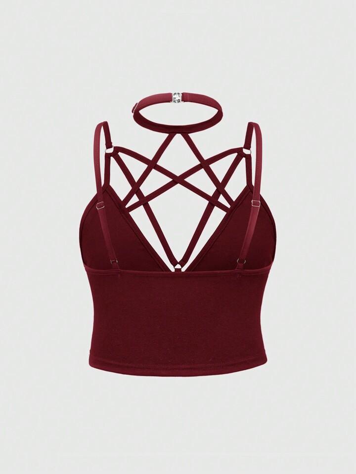 Goth Top canottiera sexy con lacci in pizzo di colore rosso vino, taglie comode, adatto per San Valentino