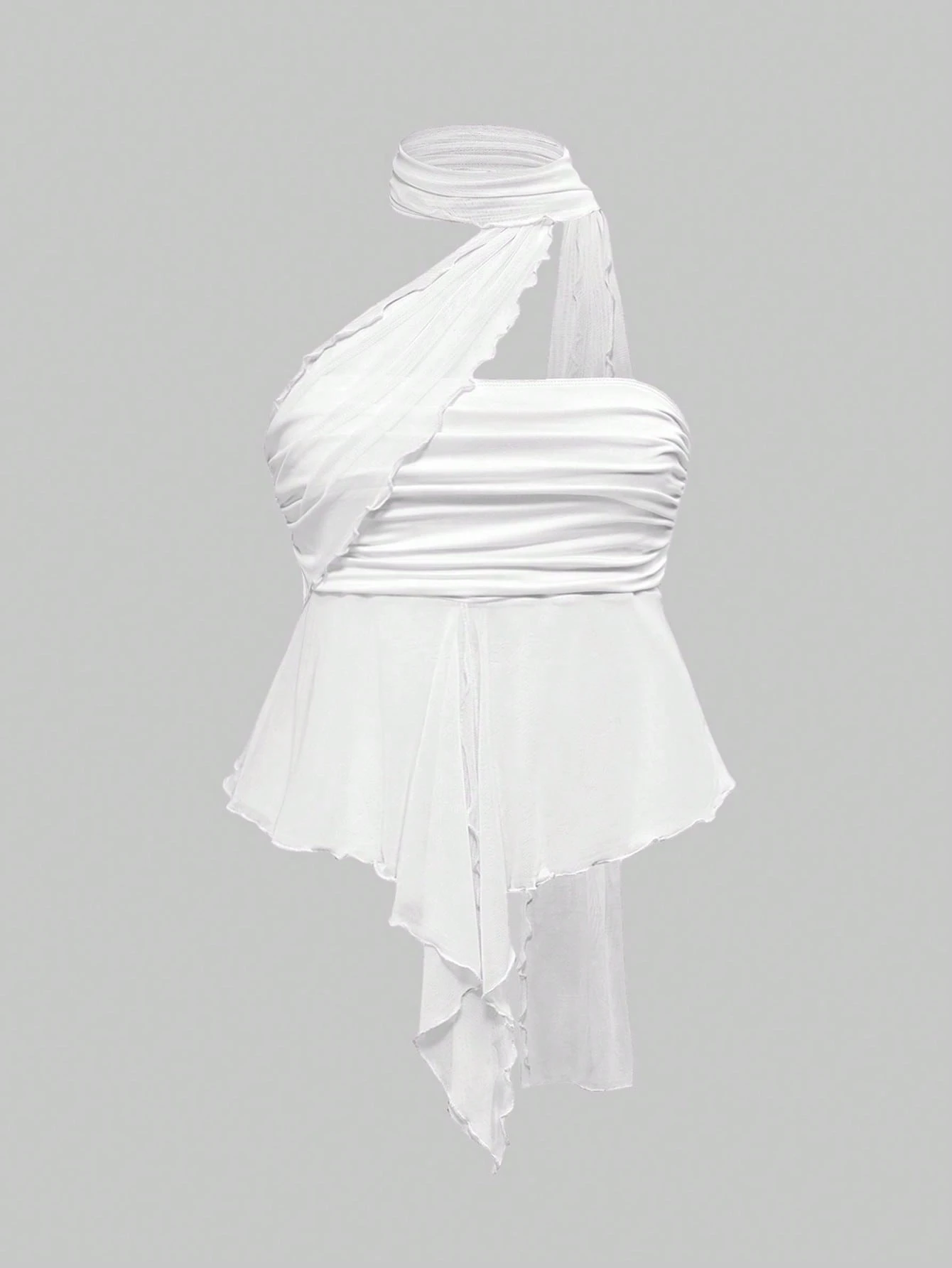 Goth Blusa taglie forti di colore uniforme, sexy, moderna, con inserti in in rete e colletto asimmetrico