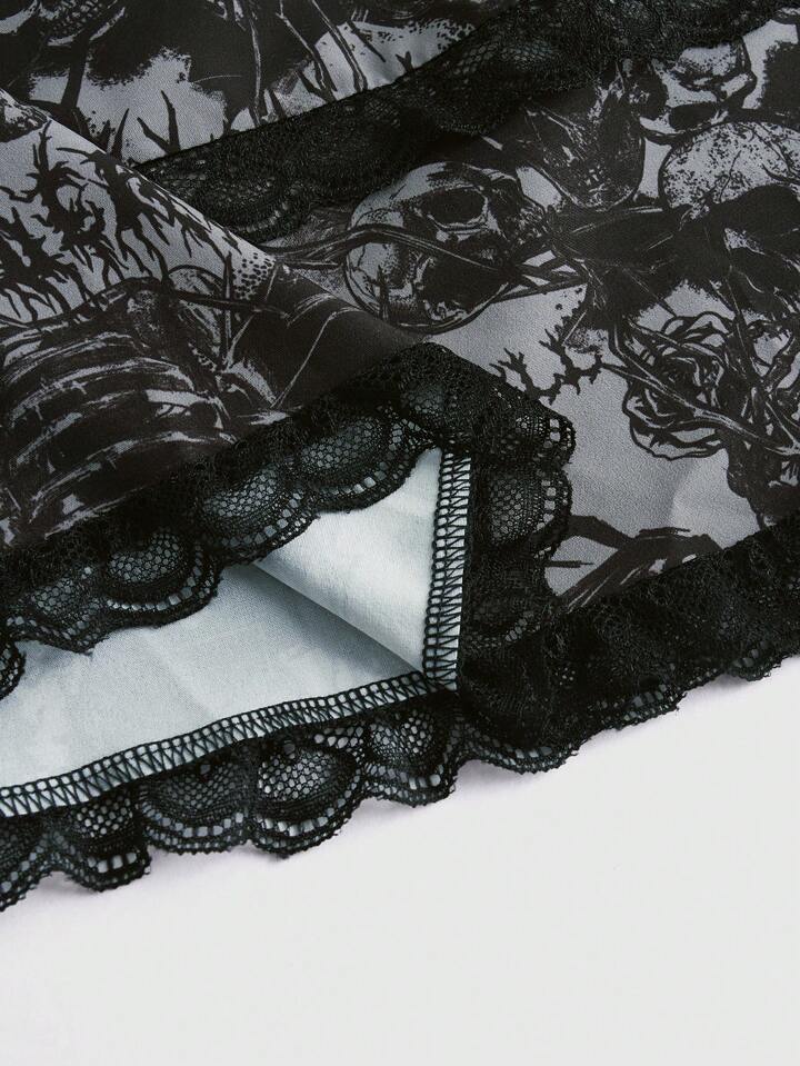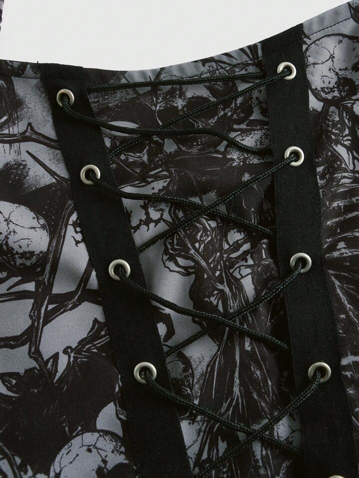 Goth Taglie Forti Abito con bretelle sottile con stampa scheletri con lacci frontale