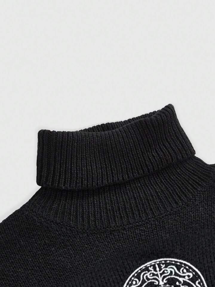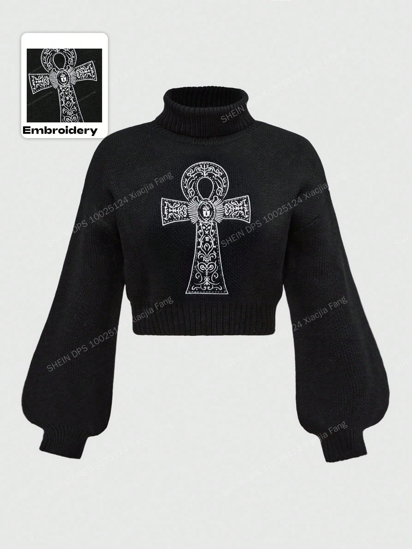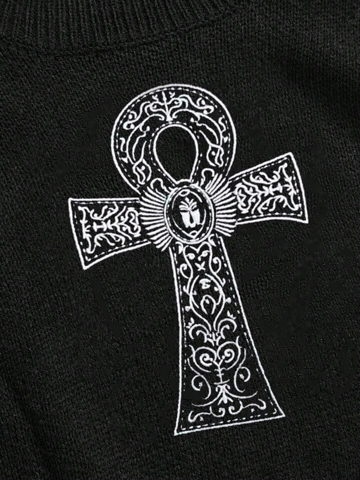 Goth Maglione a collo alto con ricamo a croce ankh, stile gotico punk
