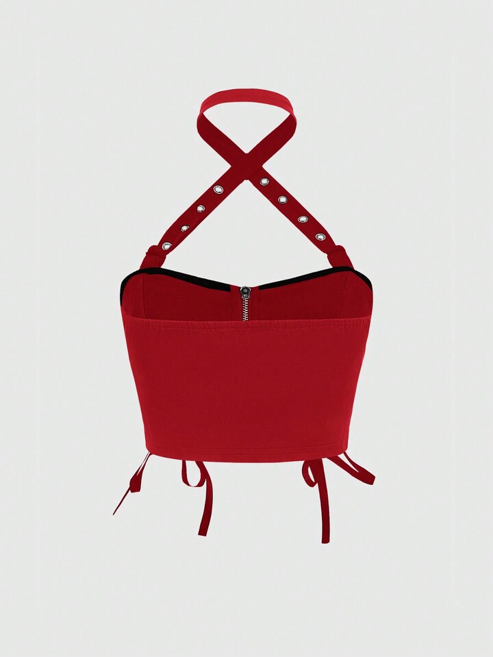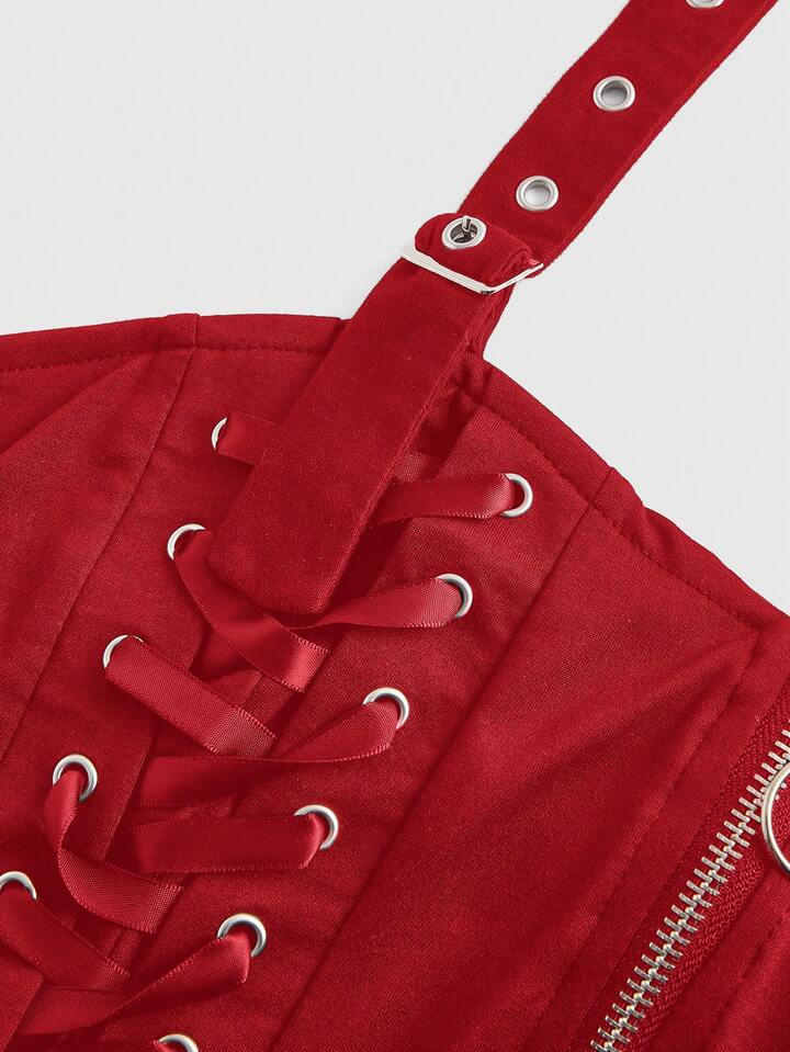 Goth Puro punk di strada Sexy Senza spalline con fiocco elastico a vista con spalline sottili e canottiera per donne di taglia grande