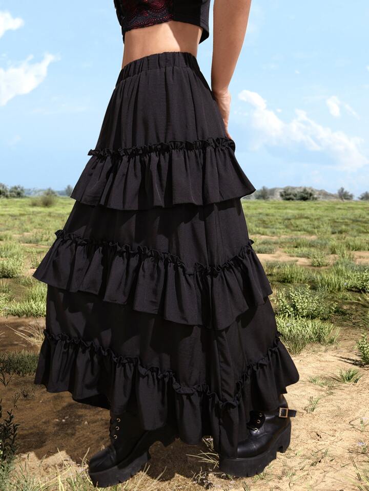 Goth Gonna a balze di stile rinascimentale a tinta unita con strati